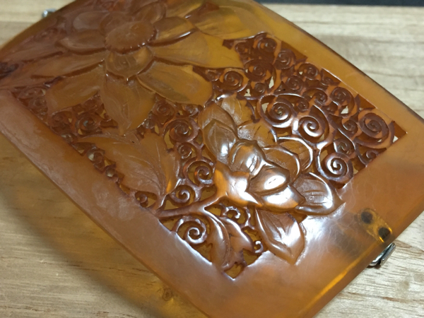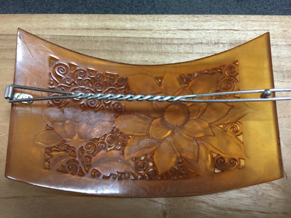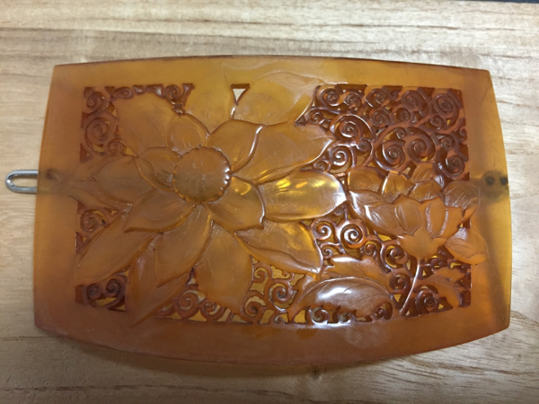 白甲の本鼈甲を使用し、透かし彫りを施した唐草に蓮のバレッタです。