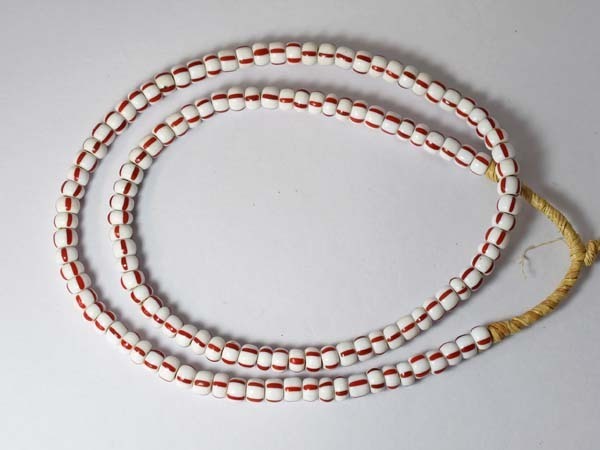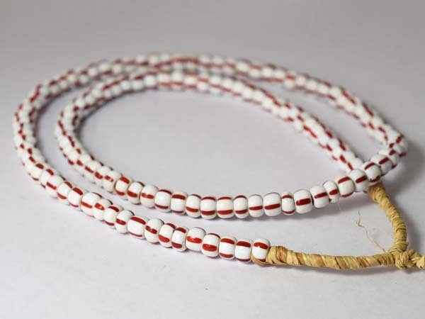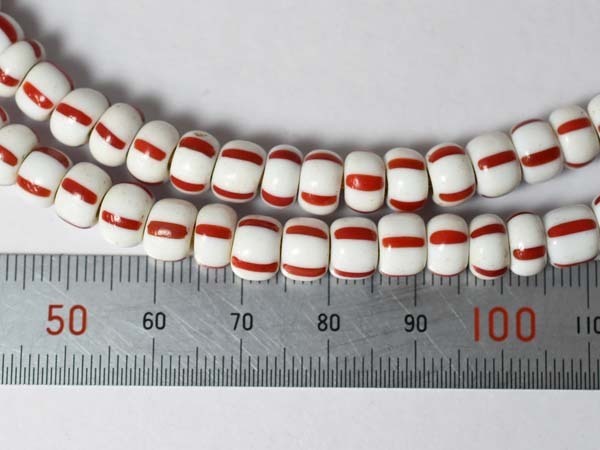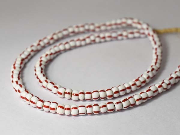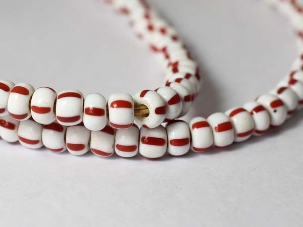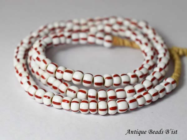 良雰囲気! ヴェネチア白地に赤縞のカンネビーズ一連E | |||
