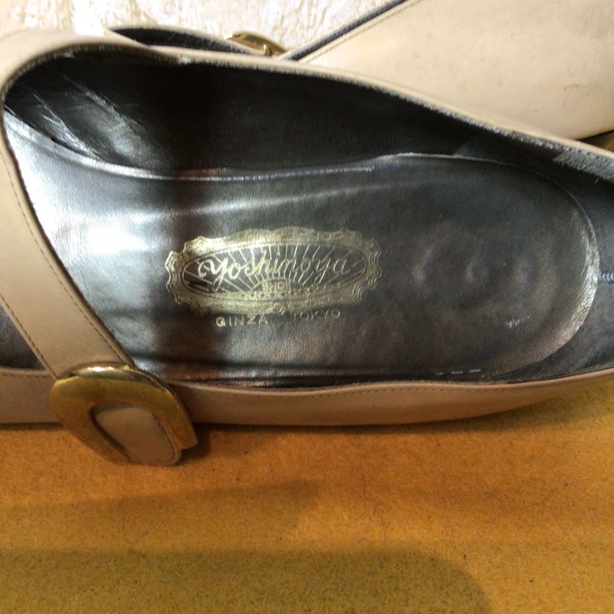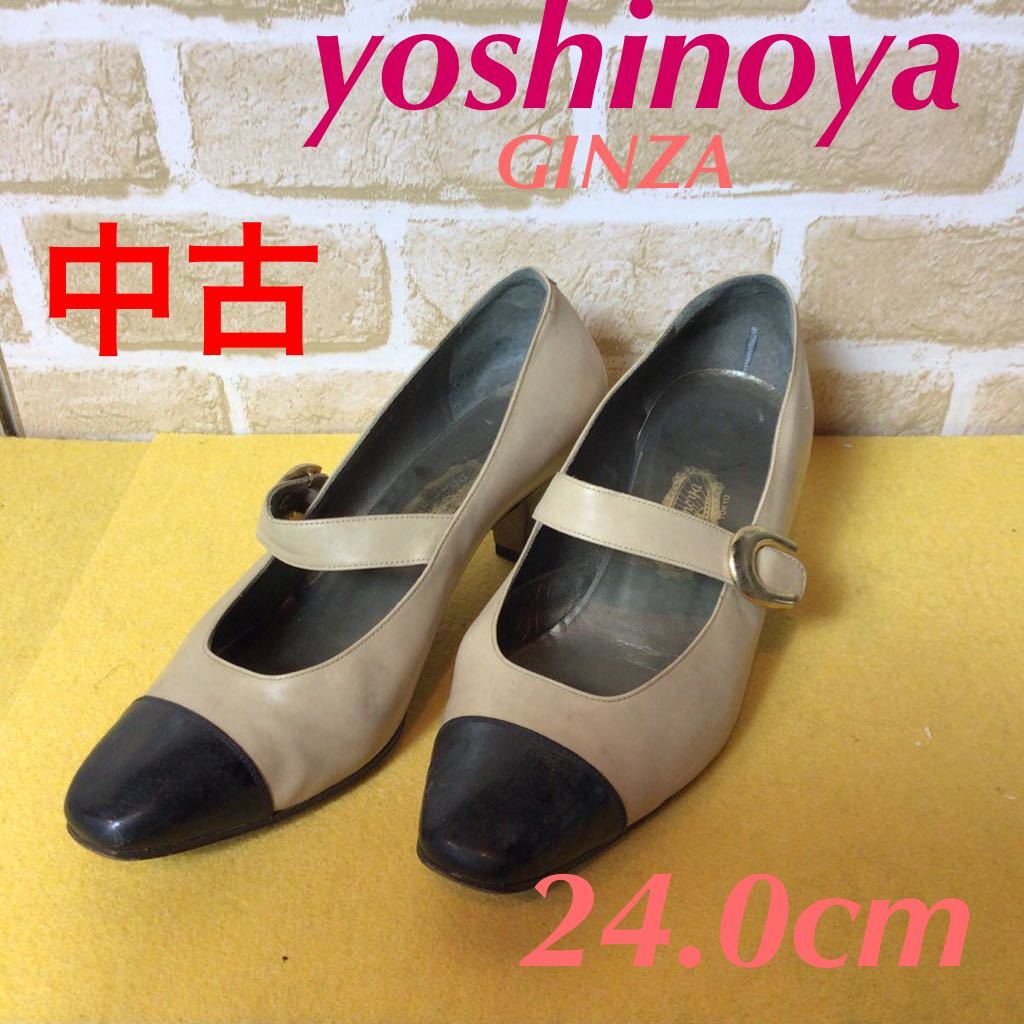 【売り切り!送料無料!】A-175 yoshinoya!銀座yoshinoya!24.0cm!パンプス!入学式!入園式!通勤!ストラップパンプス!ベージュ!黒!中古!