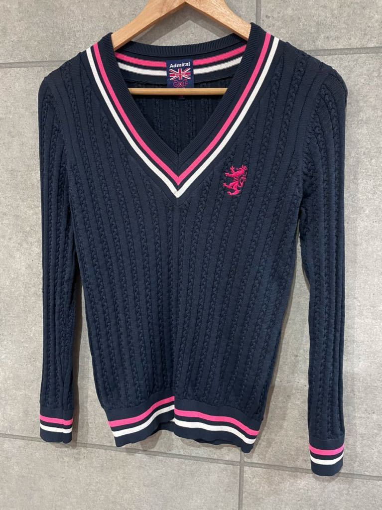 春秋に! ADMIRAL GOLF アドミラル ゴルフ Vネック セーター ネイビー Mサイズ レディース ○ 新規×