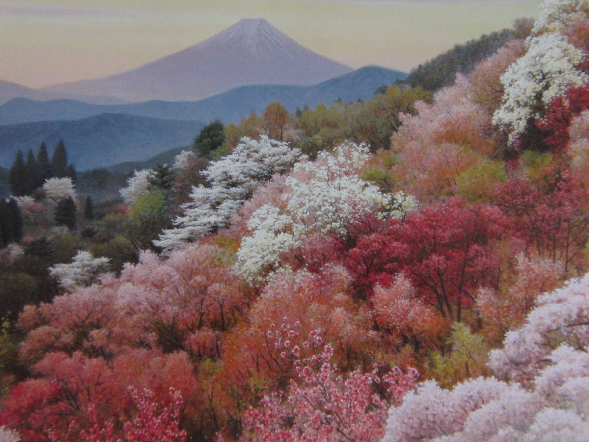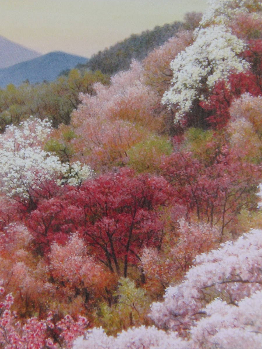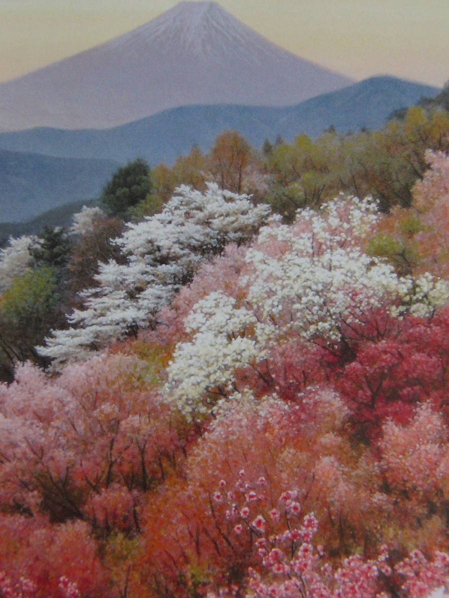 山地司、「春の山と富士」、希少な額装用画集の額装画、オーダーマット付・日本製新品額入り、送料無料