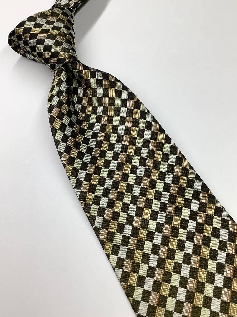 新品 日本製ネクタイ 京都織物の茶とゴールドコラボ色 グラデーション特殊柄 シルク100%お買い得サービス