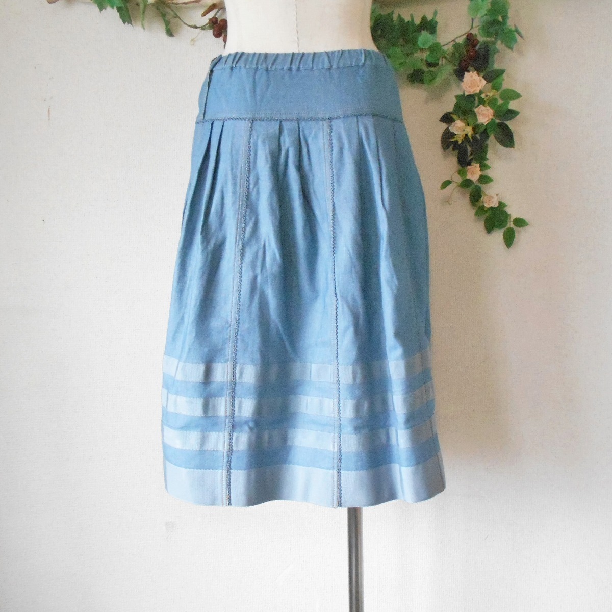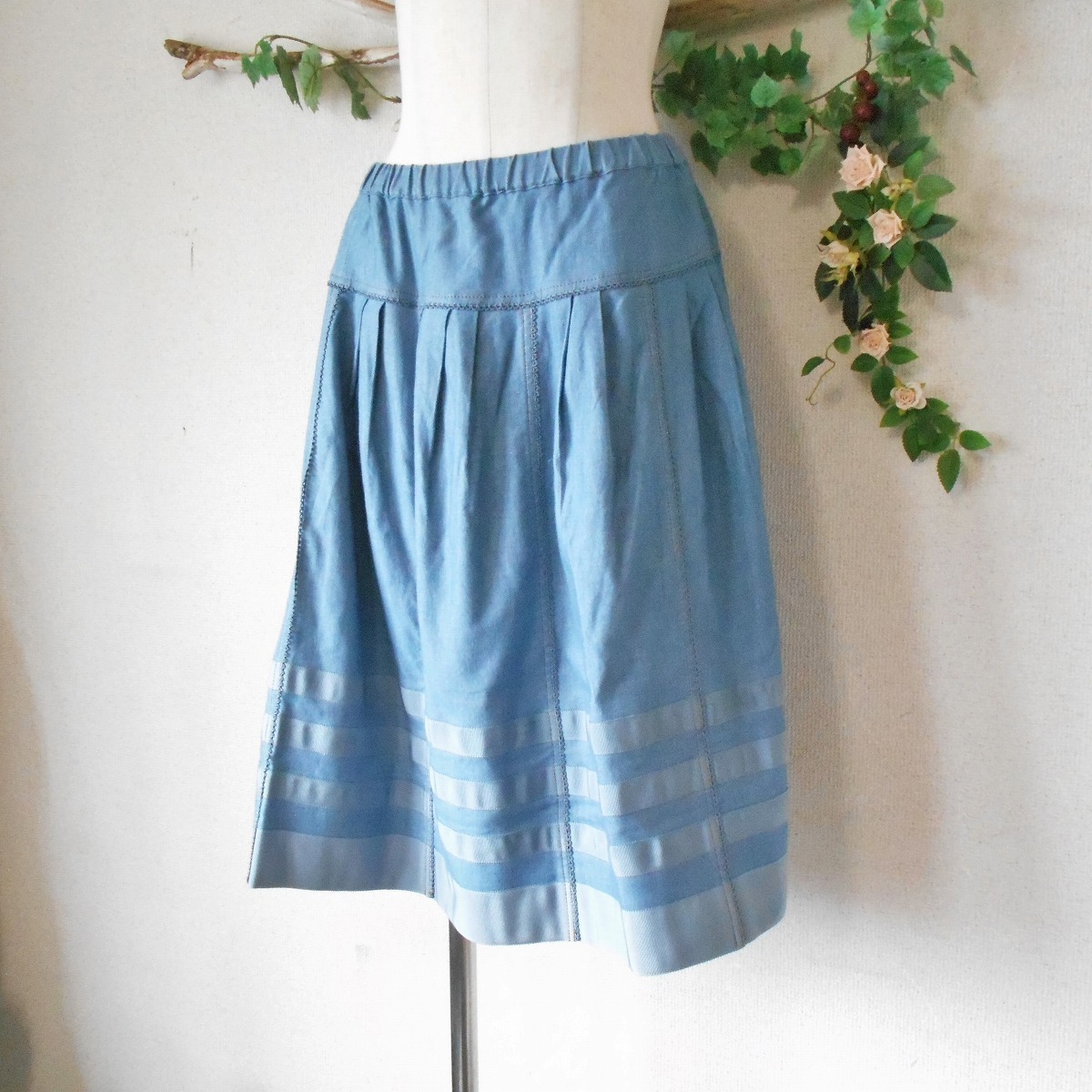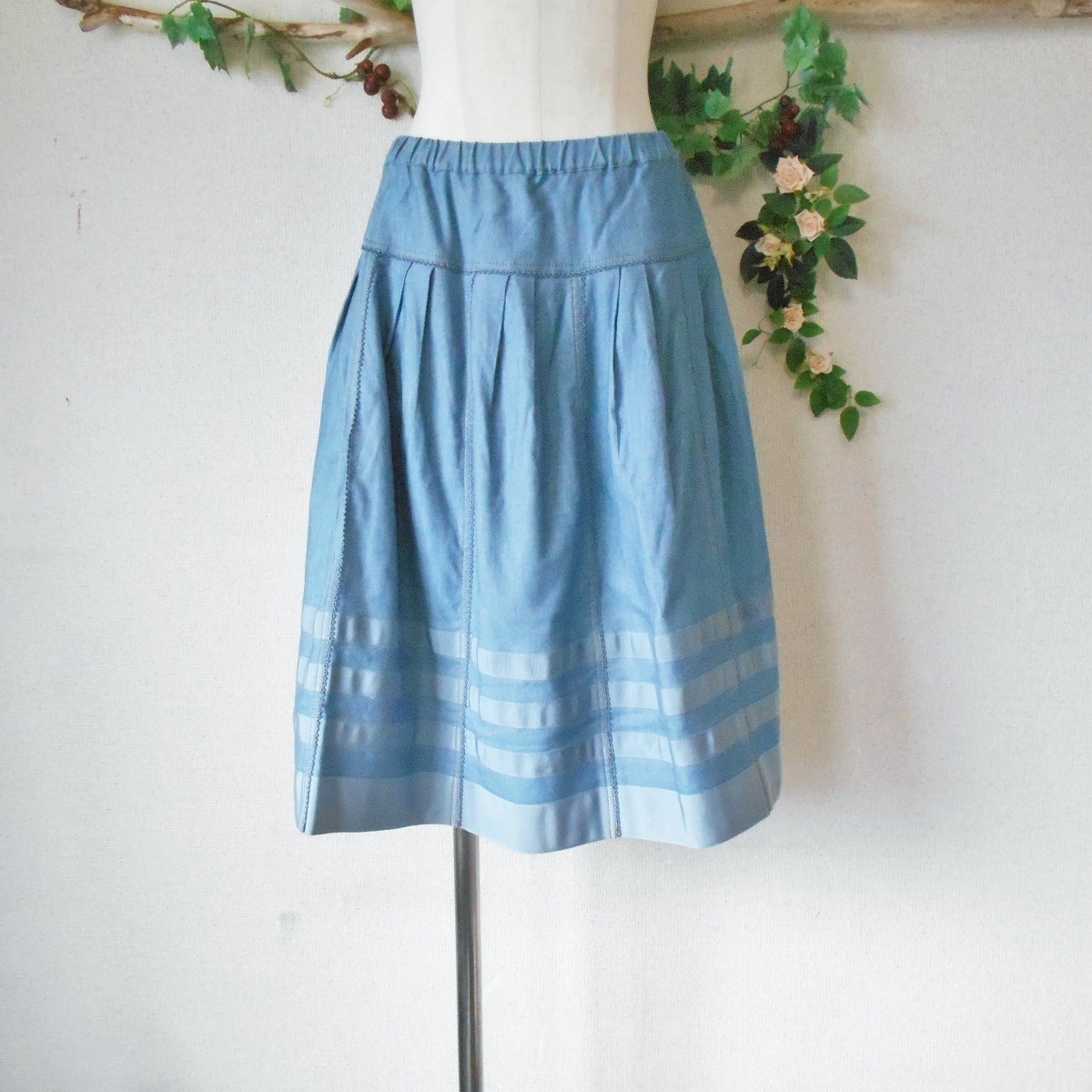 【ポイント】インゲボルグのスカートになります。お色はデニム風の水色で、麻混の春夏を中心に着ていただけるお品です。