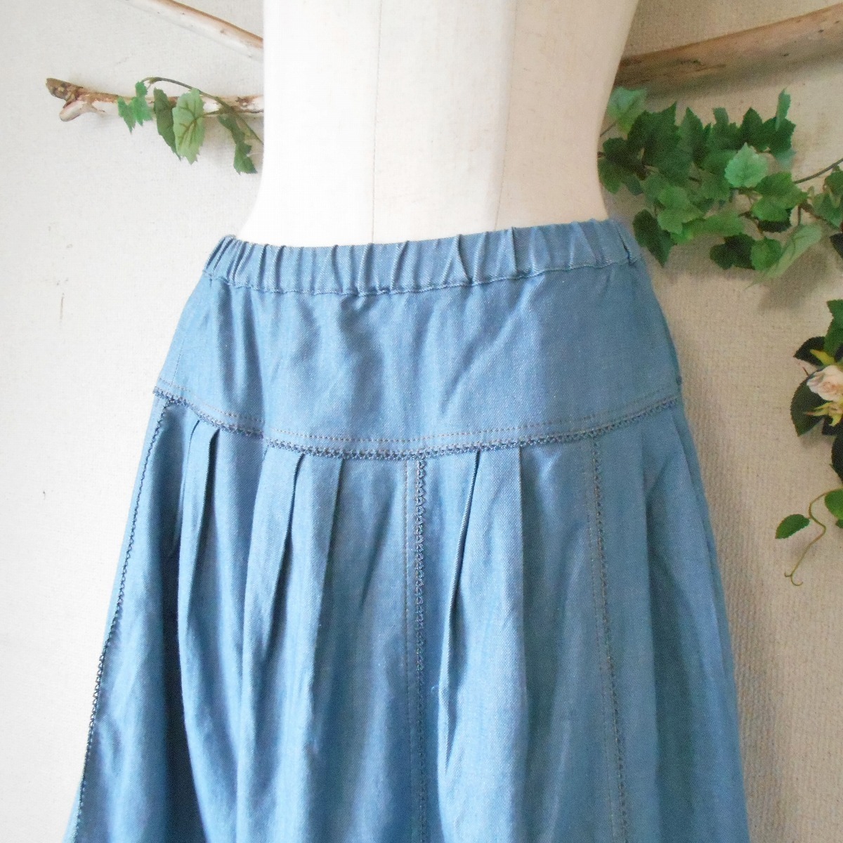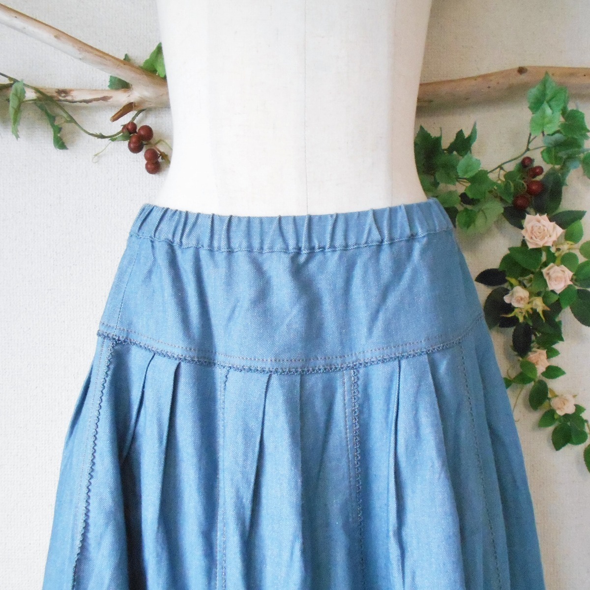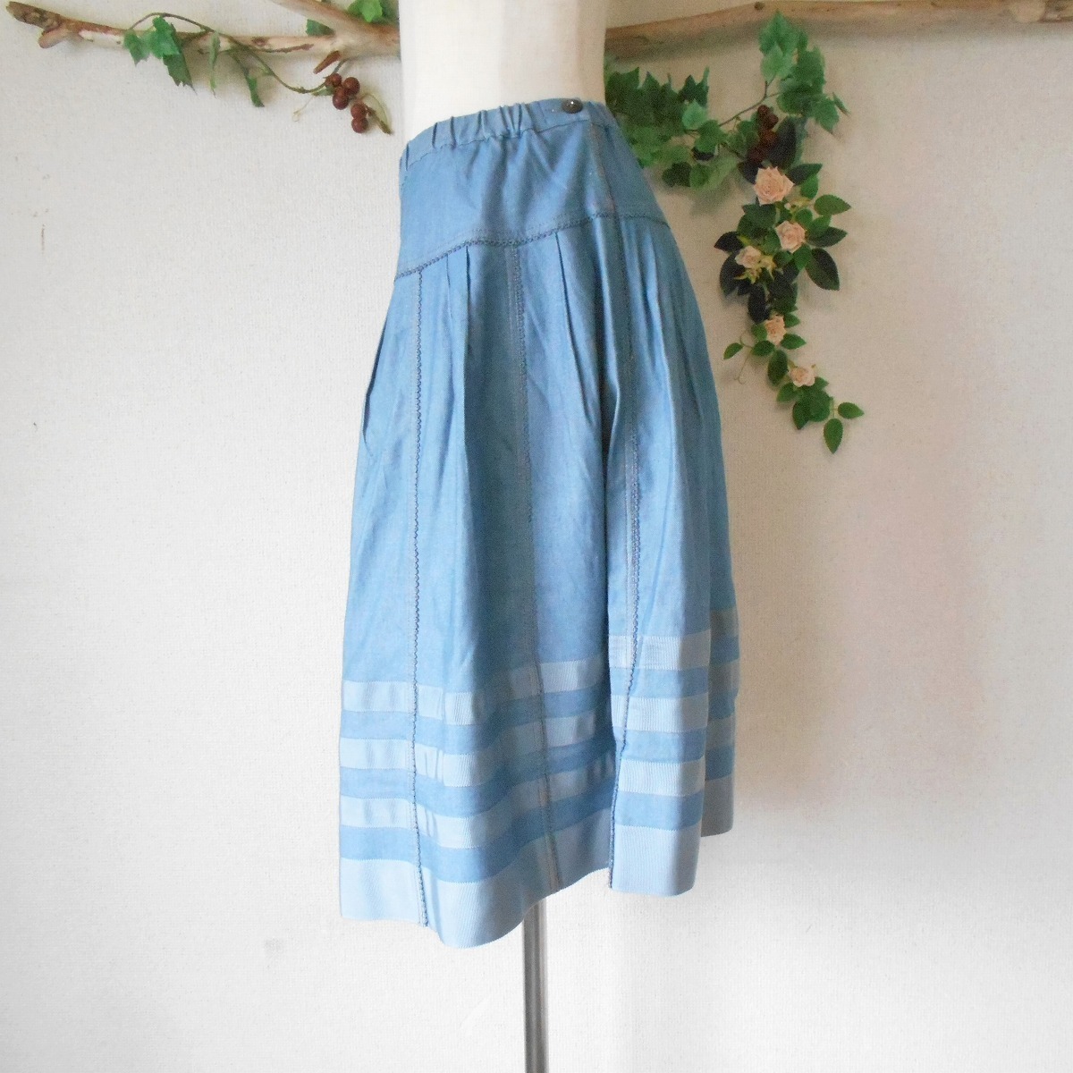 【ポイント】インゲボルグのスカートになります。お色はデニム風の水色で、麻混の春夏を中心に着ていただけるお品です。