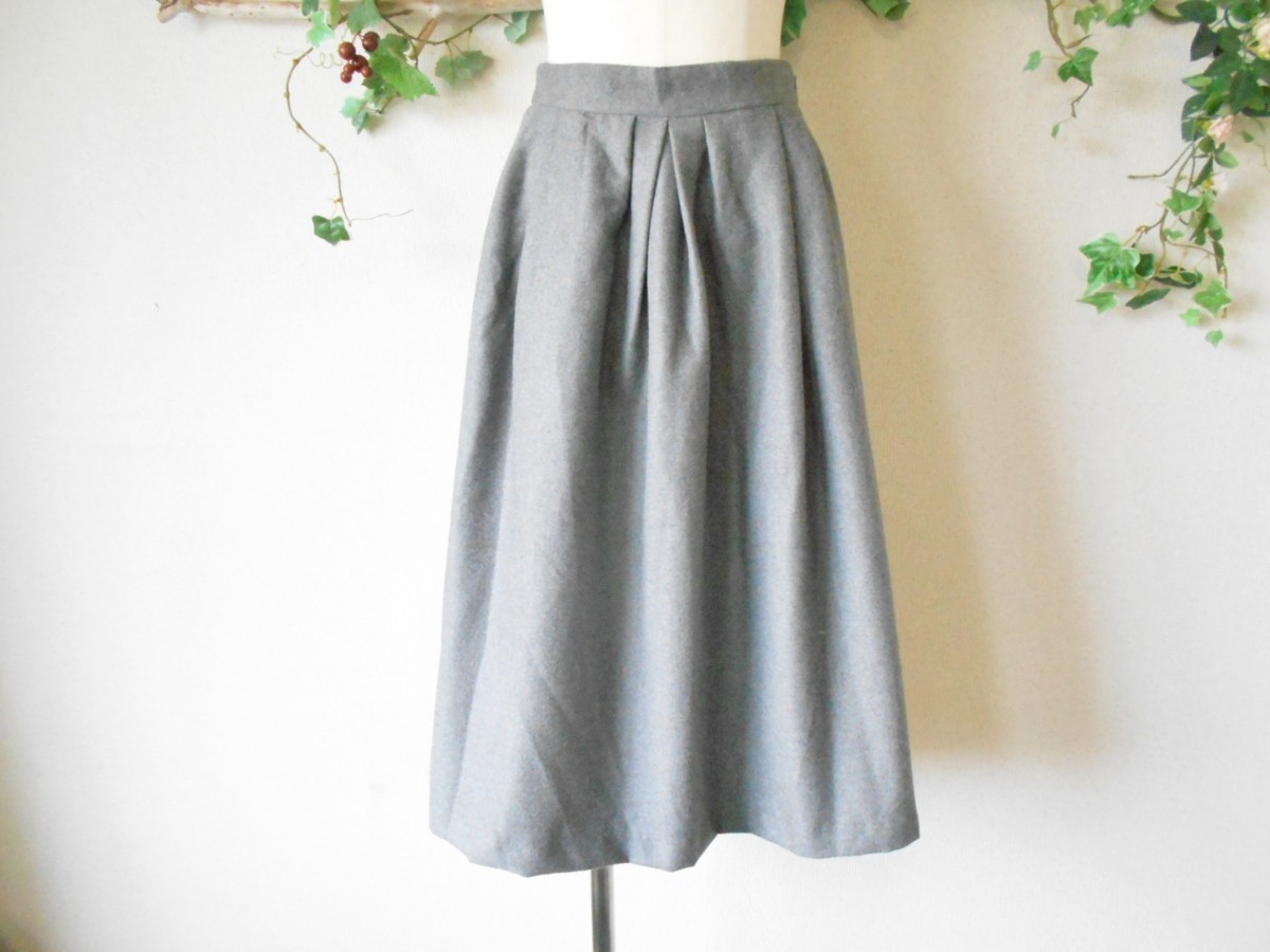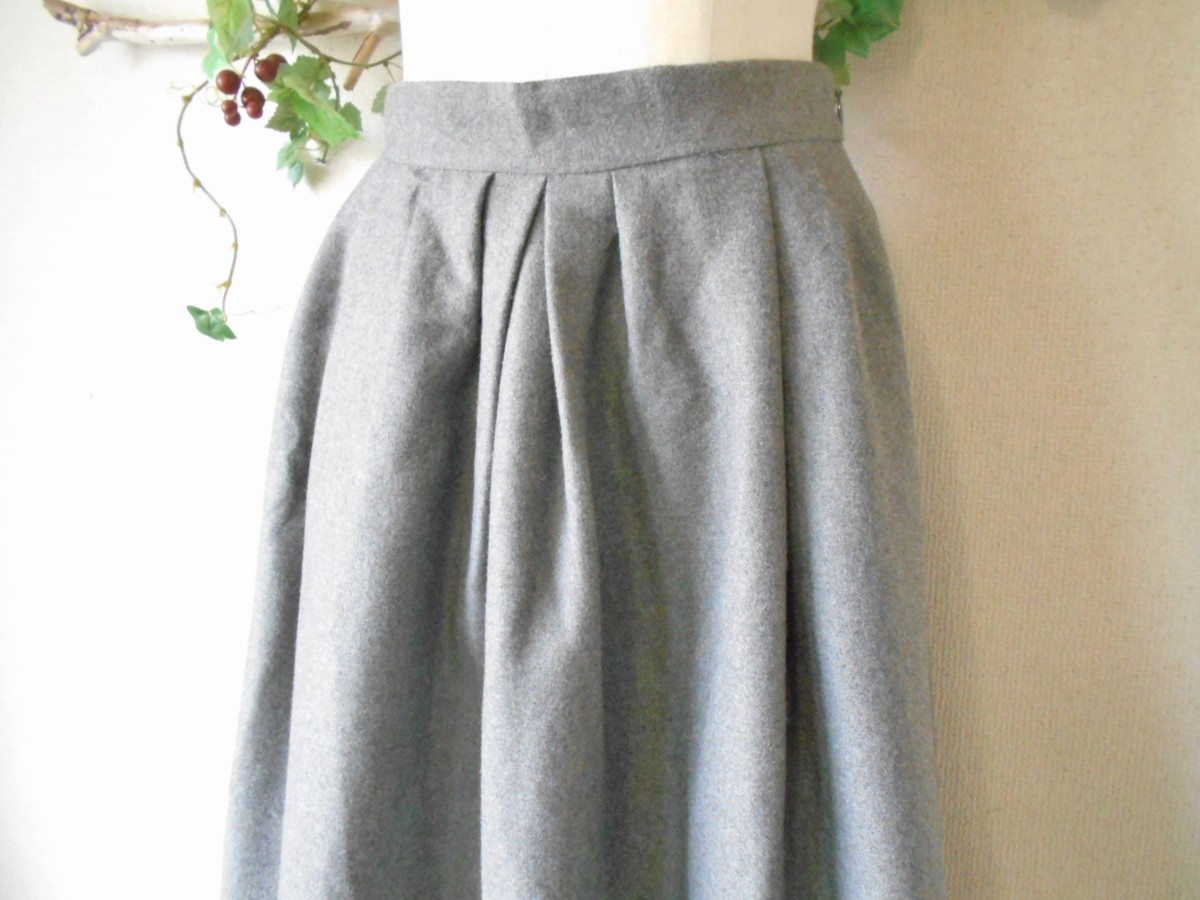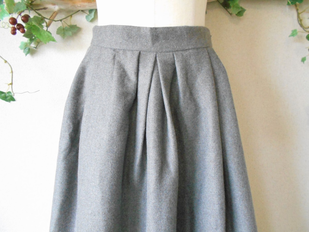 前側のウエスト部分にはタックがとってあり、ミディ丈のフレアシルエットで、上品で可愛い一着です。