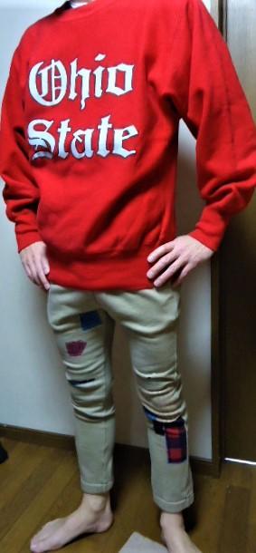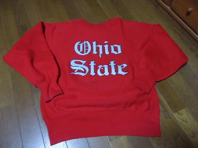 Mサイズ/OhioStateオハイオ州立大学/刺繍タグ/チャンピオンChampion/リバースウィーブ/USA/レッド/トレーナー/スウェット/90S/ビンテージ