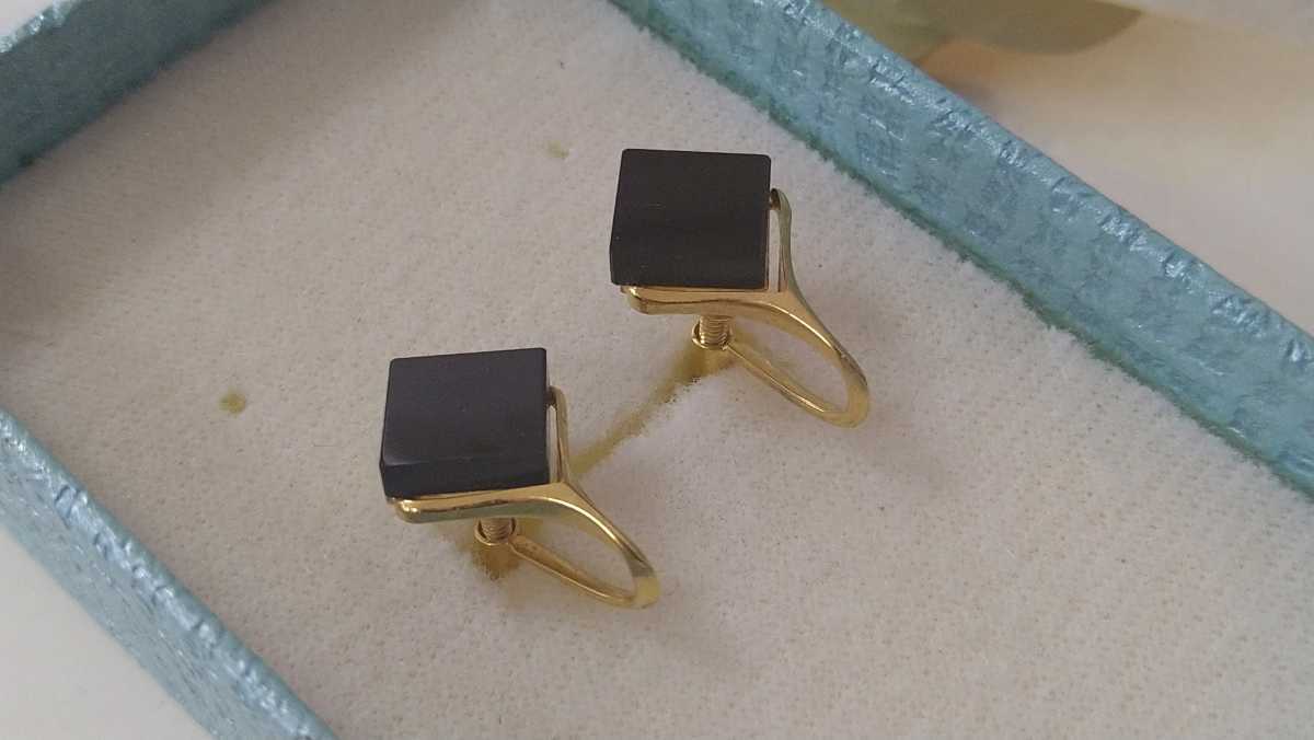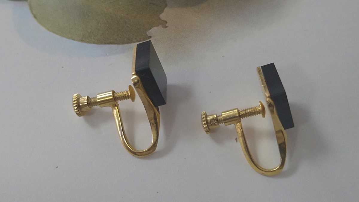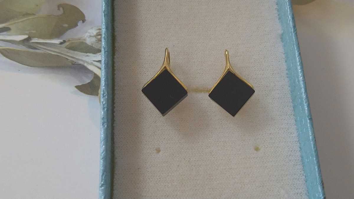 黒×ゴールドカラーの四角いイヤリングです
