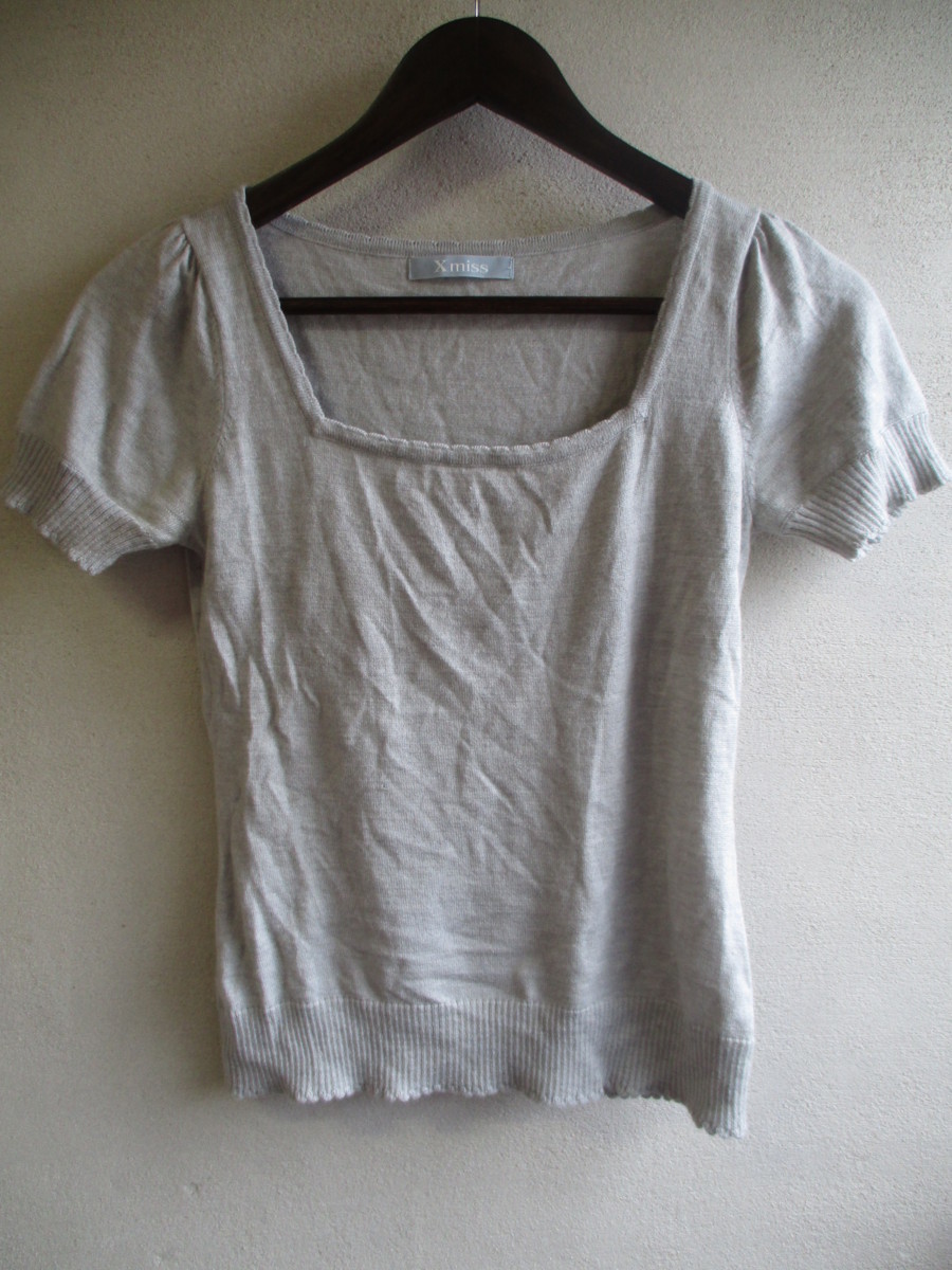 【Xmiss】 半袖ニット レディース サイズ:37 色:グレー 身丈:50 身幅:34 肩幅:34/CAH |