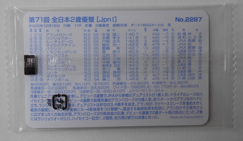 ◎まねき馬カード No.2287 第71回全日本2歳優駿(未開封)アランバローズ
