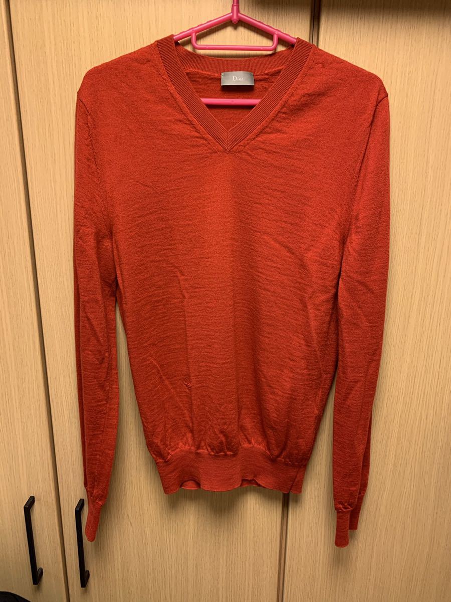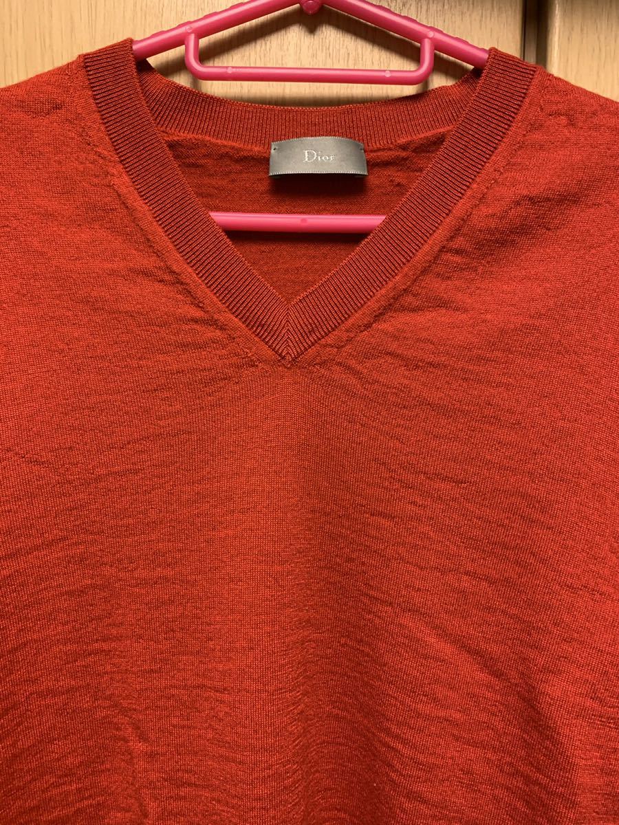 正規 Dior Homme ディオールオム KRIS VAN ASSCHE クリスヴァンアッシュ BEE 蜂 刺繍 Vネック ニット 赤 S