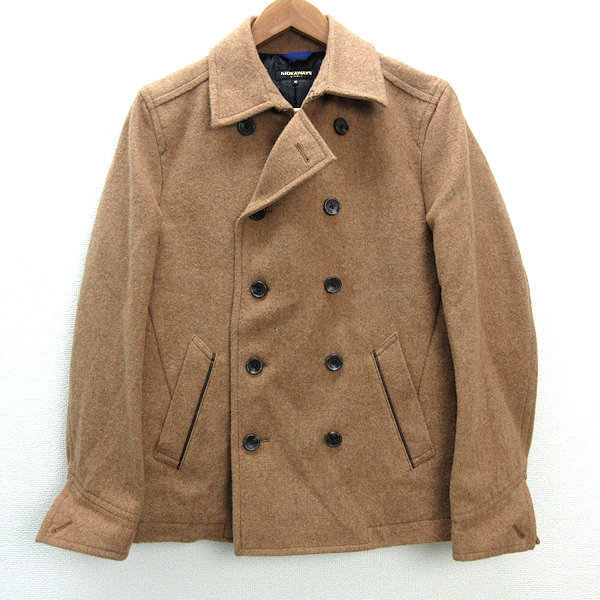 k■ハイダウェイニコル/HIDEAWAYS NICOLE ダブルボタン ウールピーコート/Pコート【46】ベージュ/MENS■113【中古】