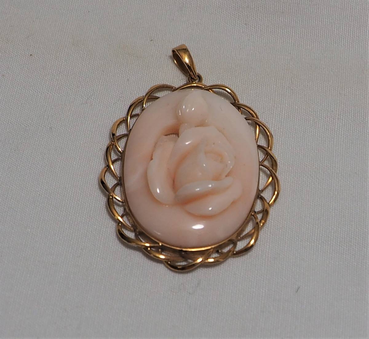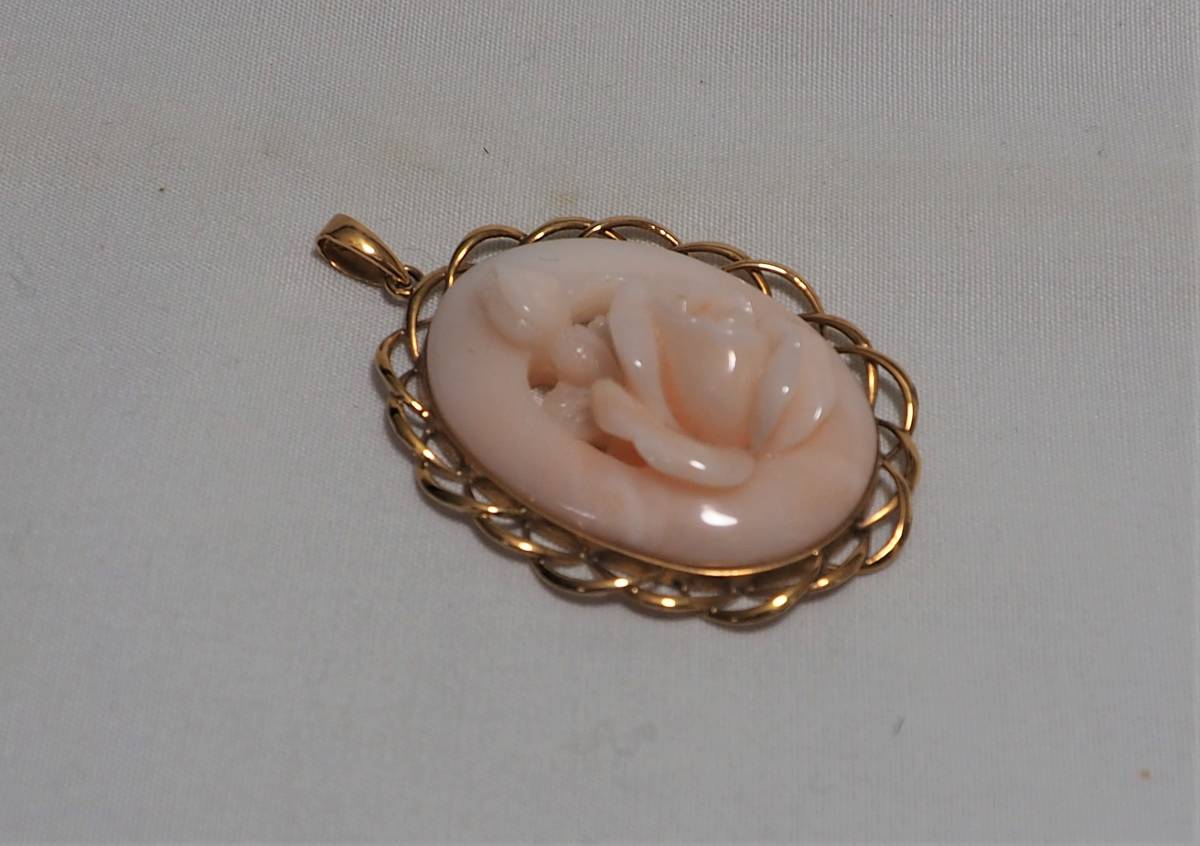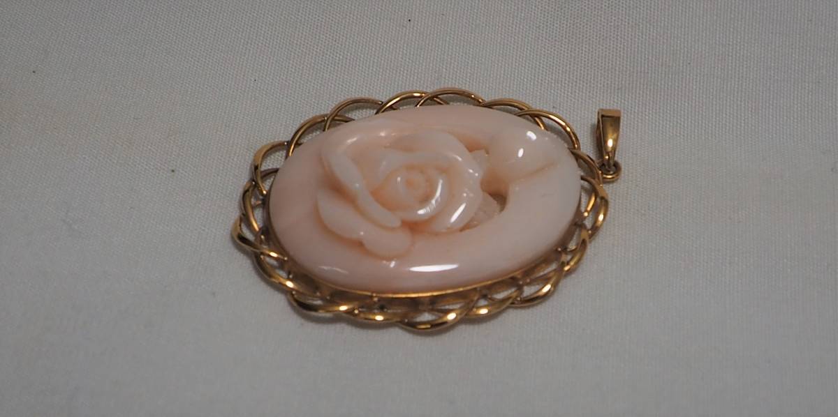 *未使用 昭和レトロ K18さんご薔薇型ペンダント