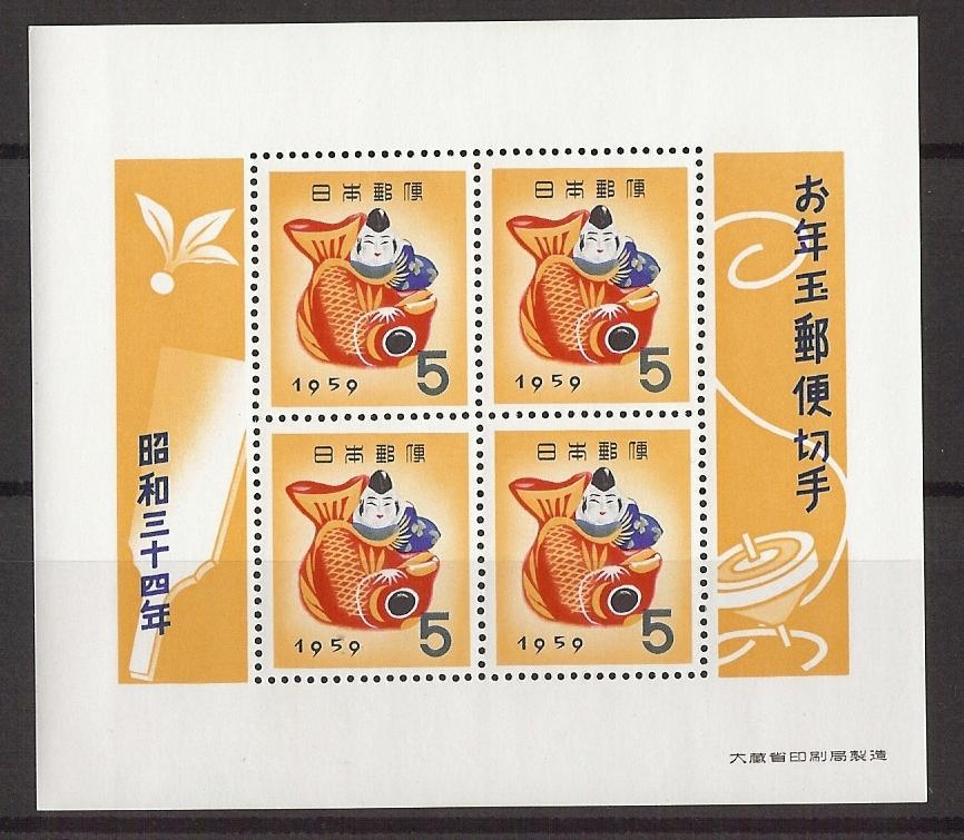 S34 年賀切手 お年玉小型シート 昭和34年用 鯛えびす