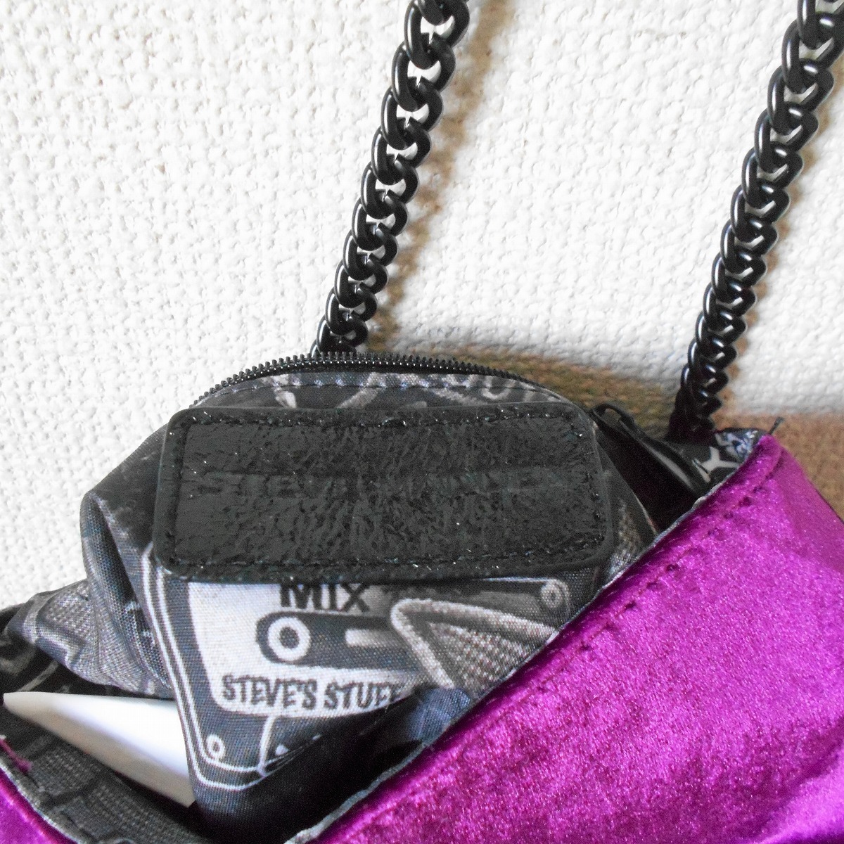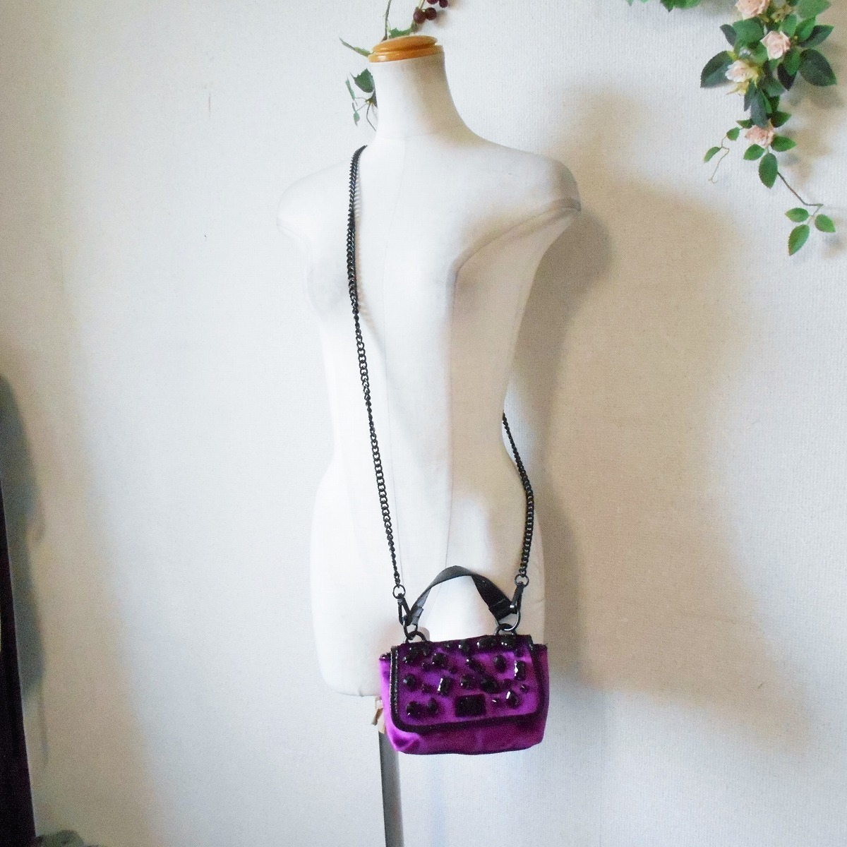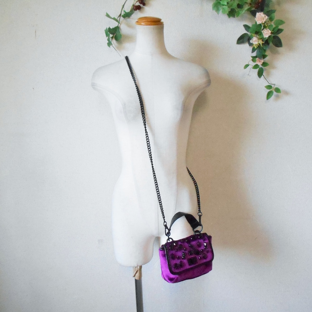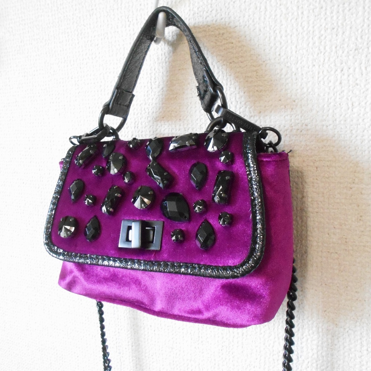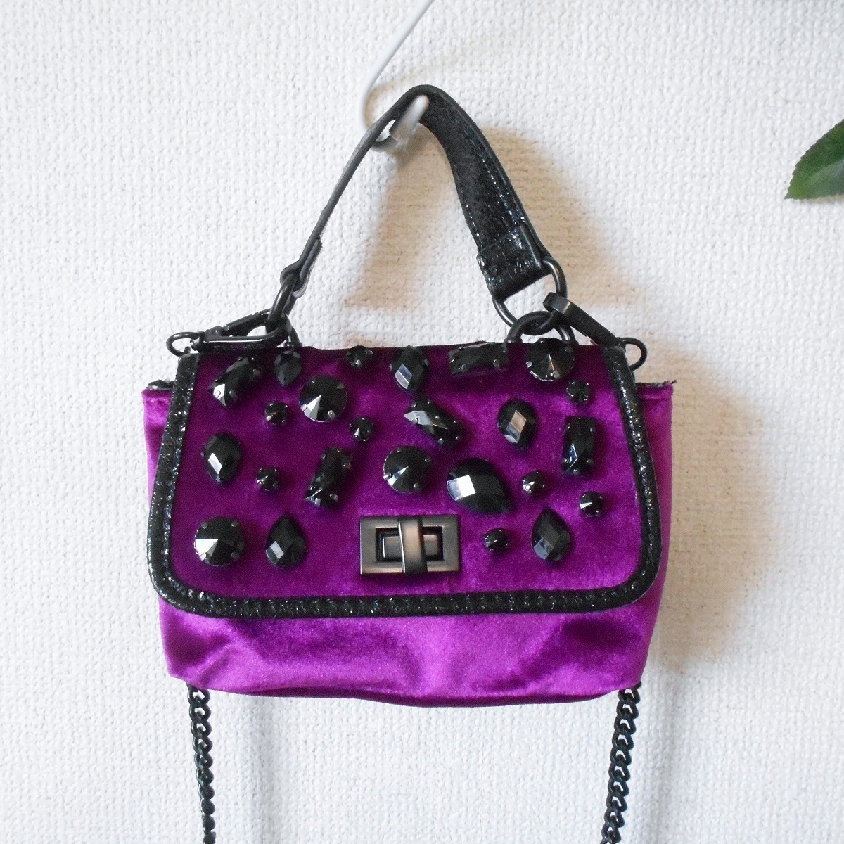 【ポイント】スティーブマデンのミニバッグになります。お色はパープル系で黒色のビジューが付いています。