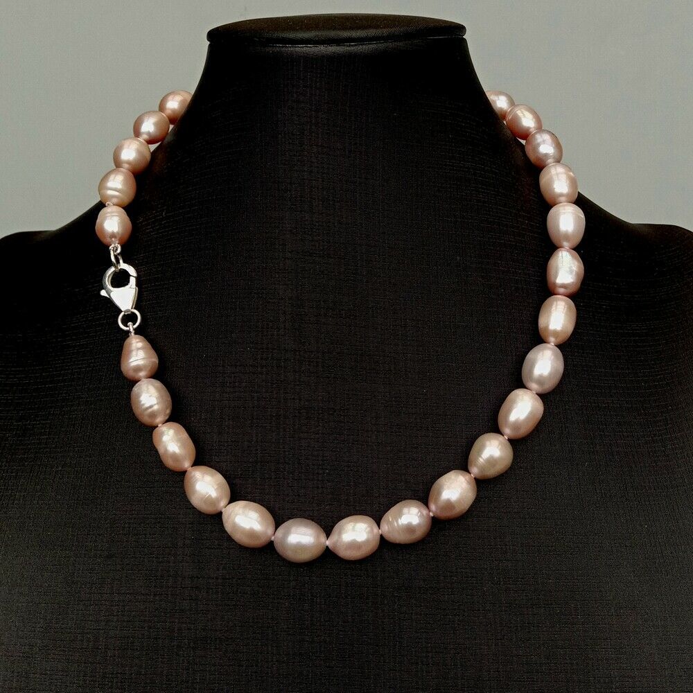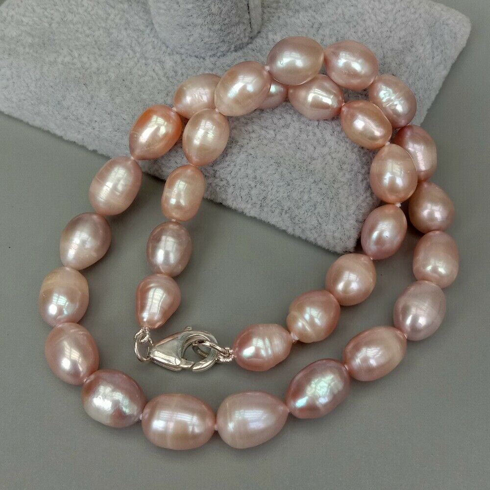 <新品>パープル 淡水養殖 ライス パール 真珠 17インチ 925シルバー クラスプ ネックレス 結婚式 フォーマル プレゼント パーティー