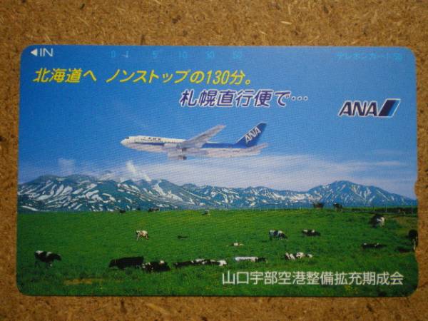 hiko・航空 350-3338 全日空 ANA 北海道へ 牛 テレカ