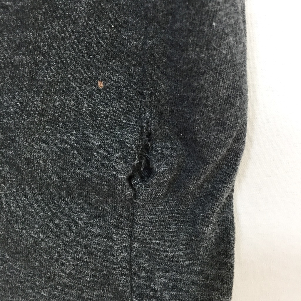 "全体的に毛羽立ち、左裾付近に穴あります。