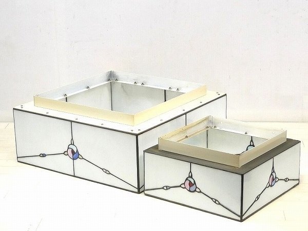 昭和レトロ/乳白色硝子ステンドグラス花柄角型ランプシェード2点になります。
