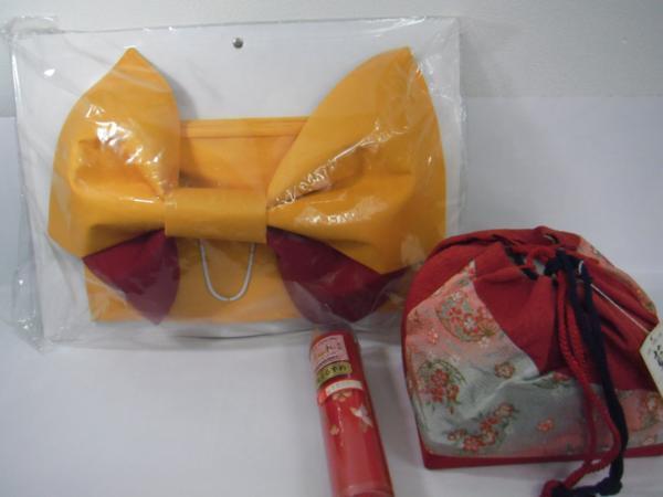 ●浴衣帯 結び帯 作り帯  黄色 巾着&半衿おまけ付き