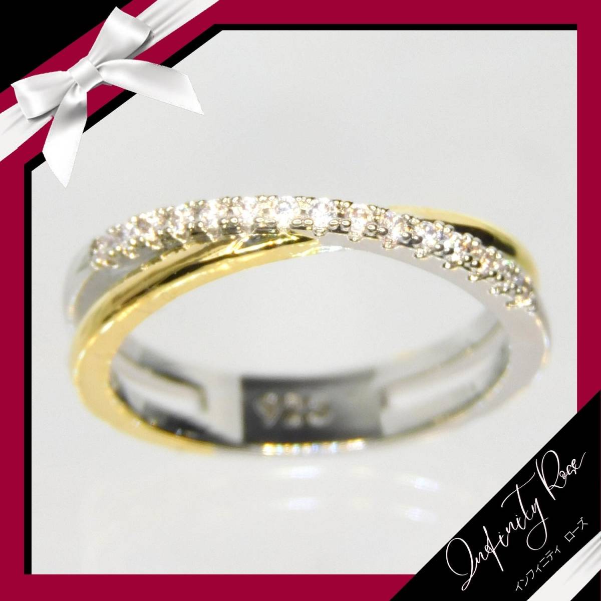 (1109)14号 シルバー×ゴールド豪華エンゲージリングクロス高級リング 指輪