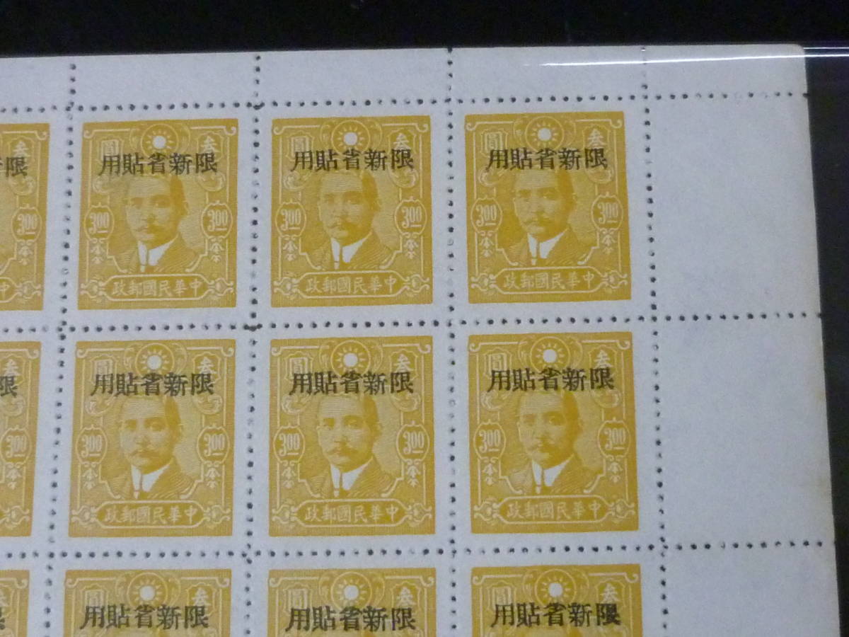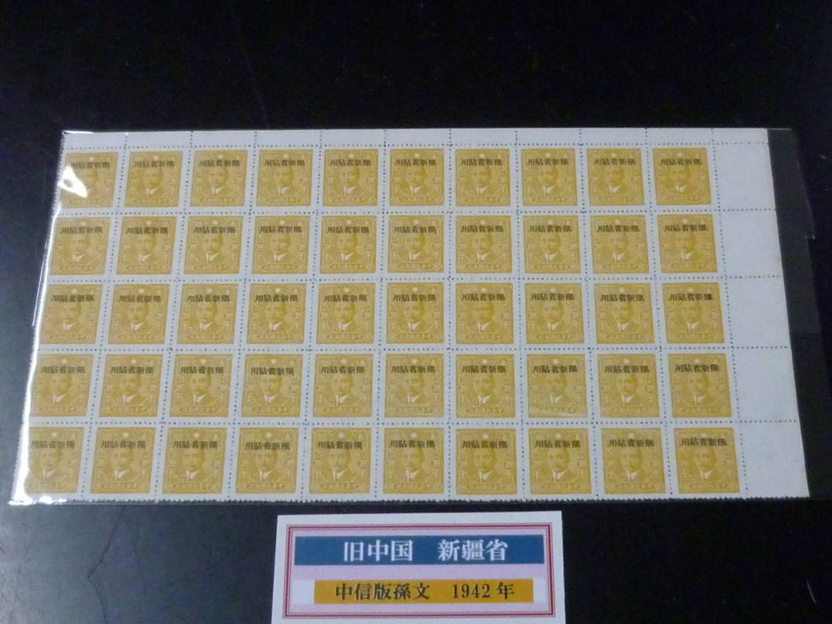 22SE A №61 旧中国切手 新疆省 1942年 中信版孫文 道林紙 $3 50枚ブロック 未使用NH・VF