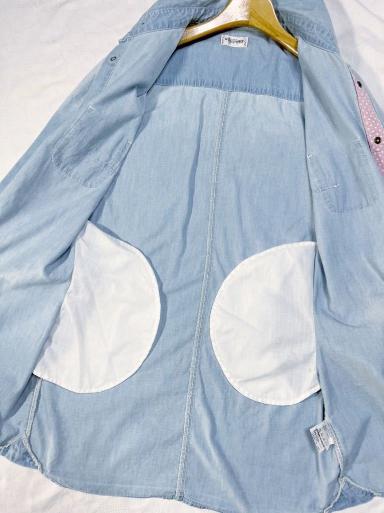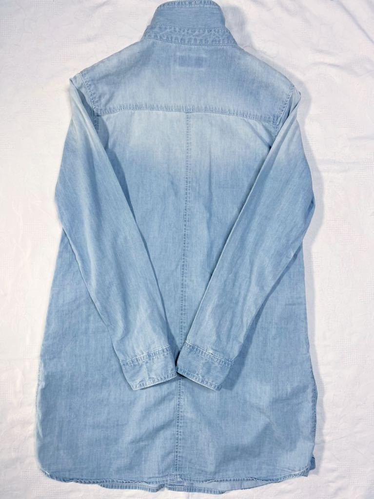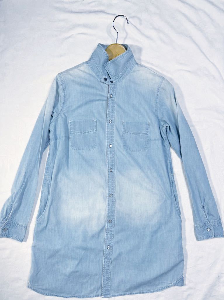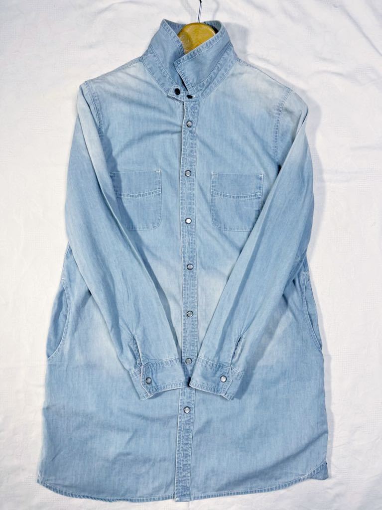 ◆色デザインユーズド加工シャンブレー生地素敵な長袖デニムへシャツワンピース