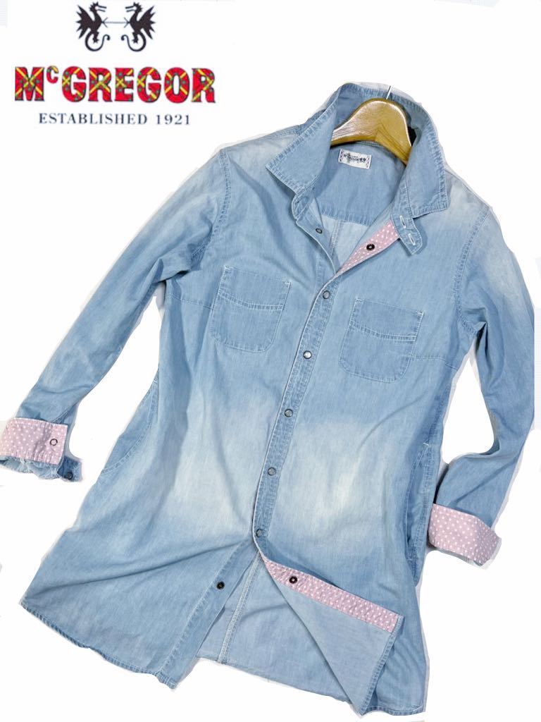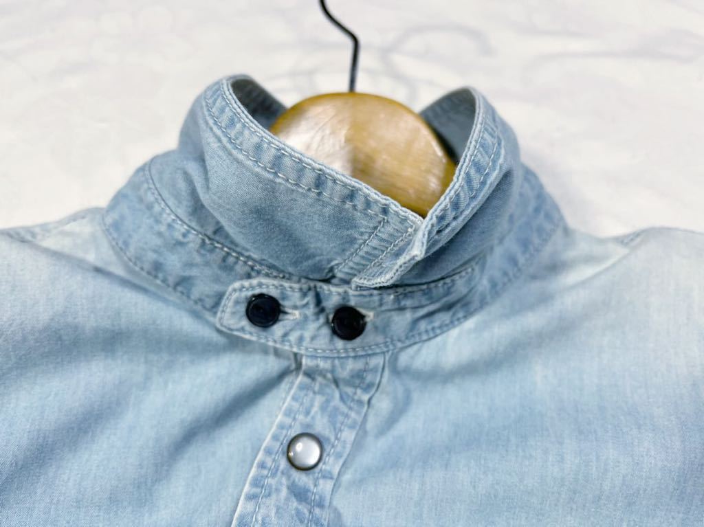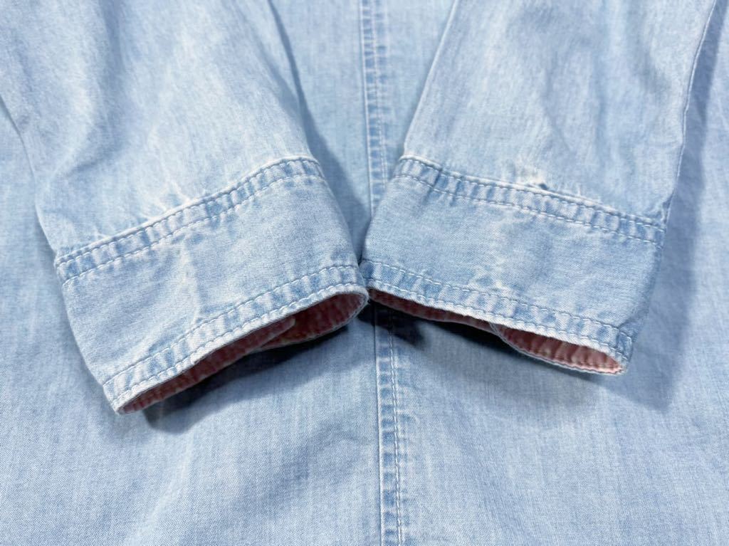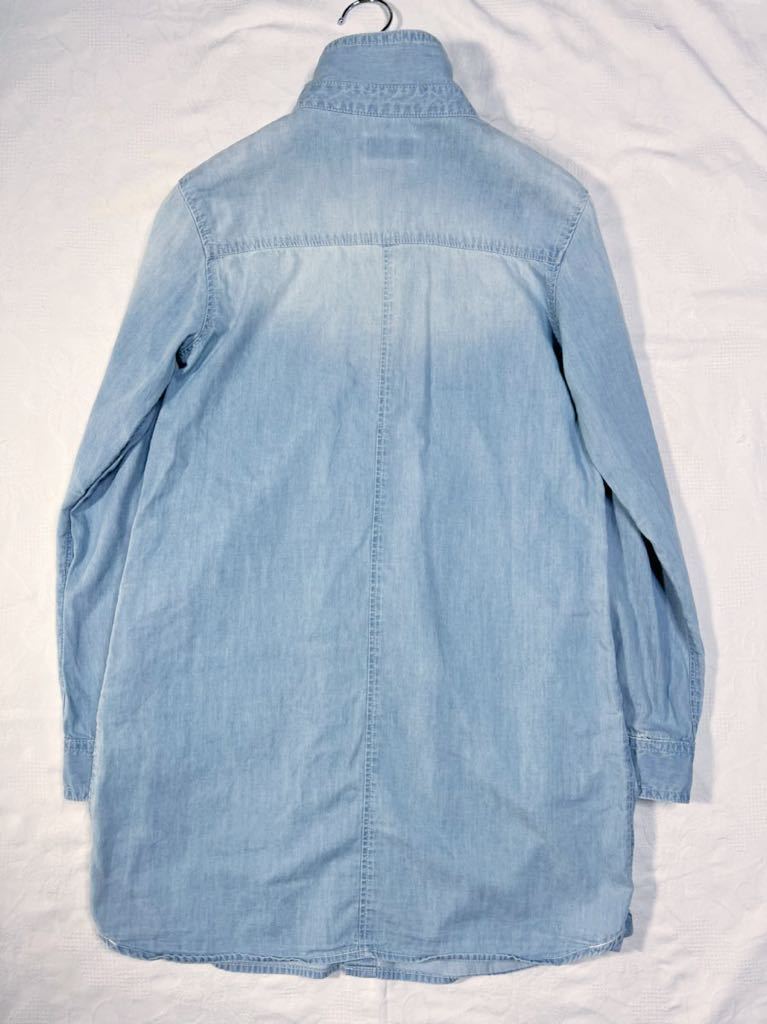 ◆色デザインユーズド加工シャンブレー生地素敵な長袖デニムへシャツワンピース