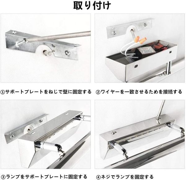 • 【商品仕様】製品名:Ledウォールランプ サイズ:40cm 消費電力:5W  発光色: warm white 光源:LEDビーズ 材質:ステンレス 入力電圧:100V~220V  防水レベル:IP44 光の色温:2700-3500K スイッチ付き