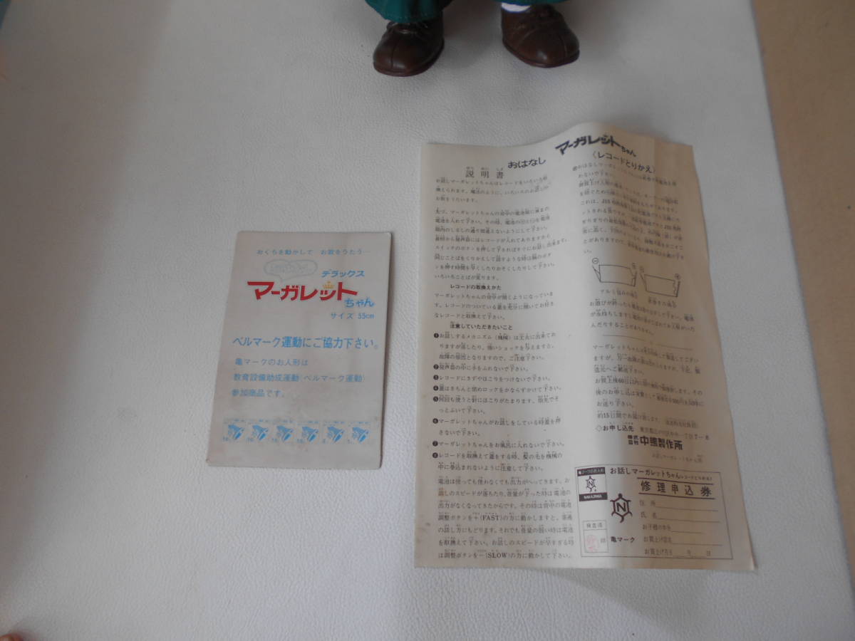中嶋製作所 デラックス おはなし マーガレットちゃん 特大サイズ 55㎝ レコード2枚 マイク 元箱付き スリープアイ 日本製 話ジャンク