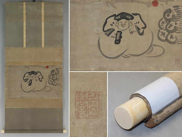 | №2102044【真作】明誉古磵【大黒】◆紙本◆合箱◆掛軸 | |