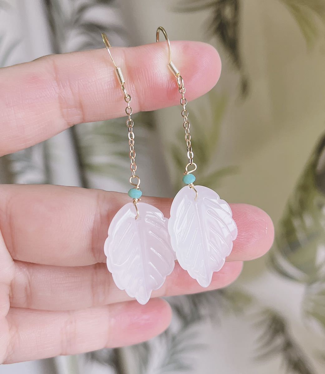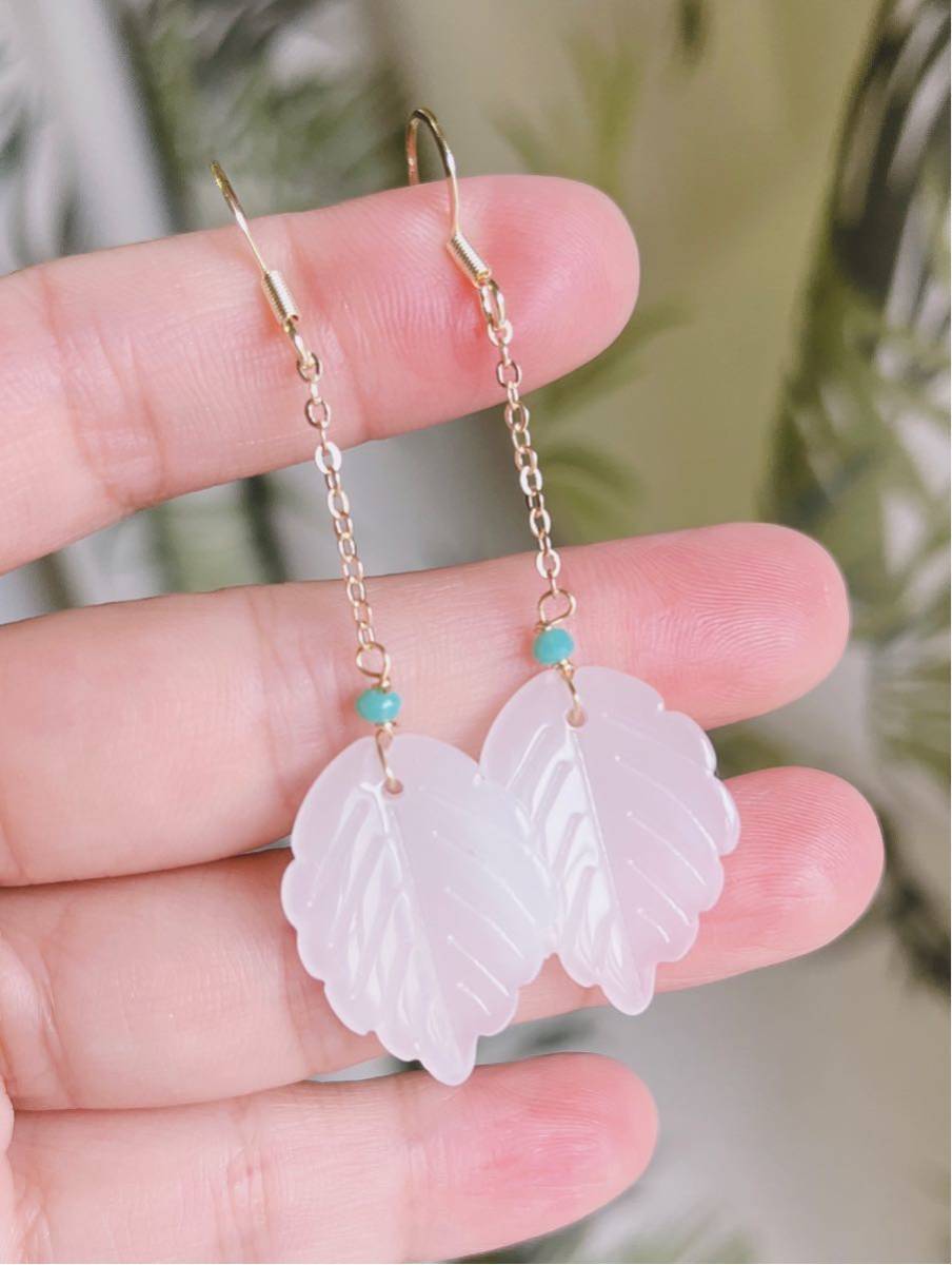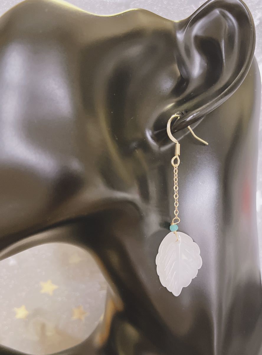 天然白玉髓 葉 ピアスのサイズ約:17.4mm*23.5mm*3mm;