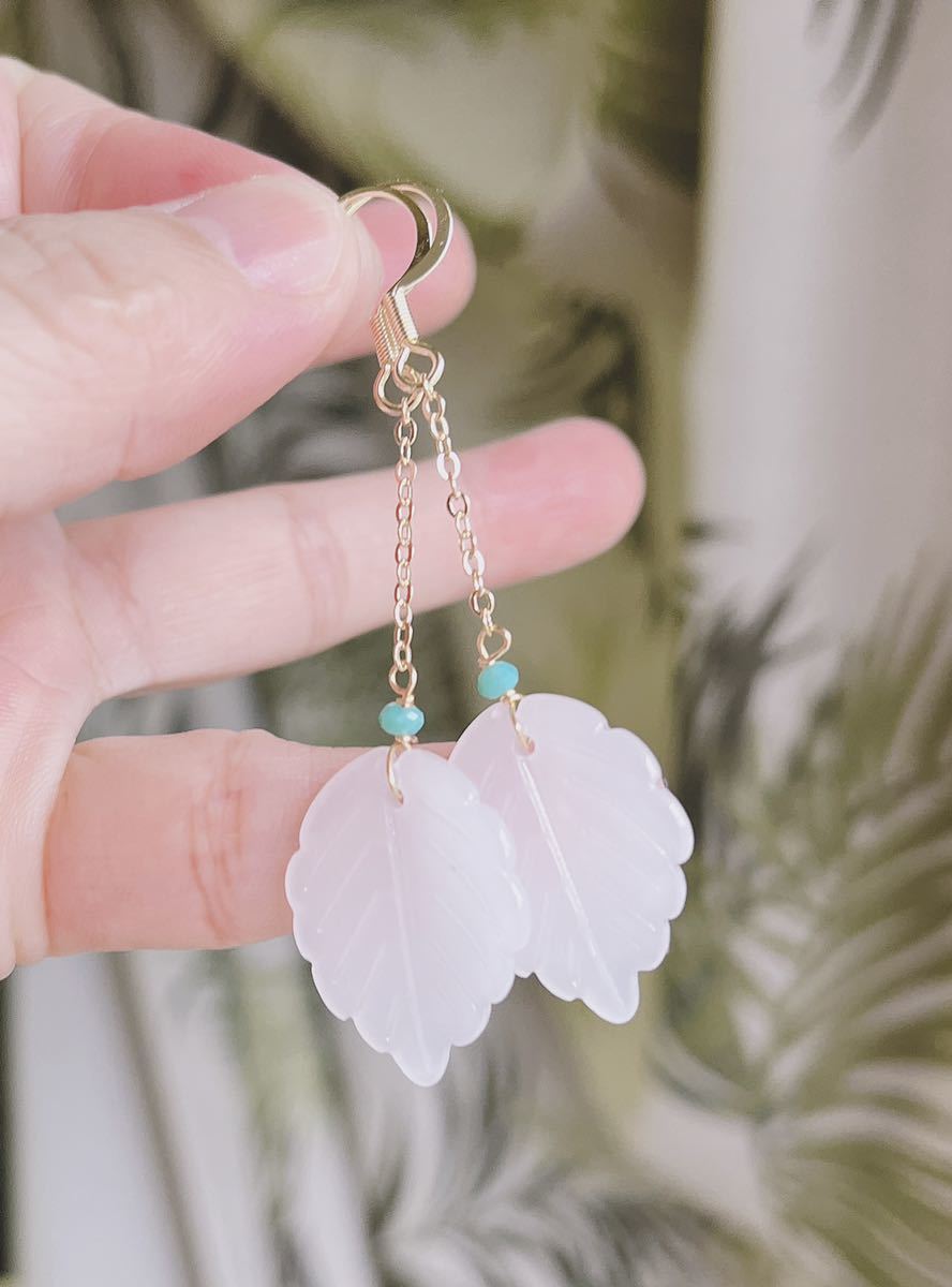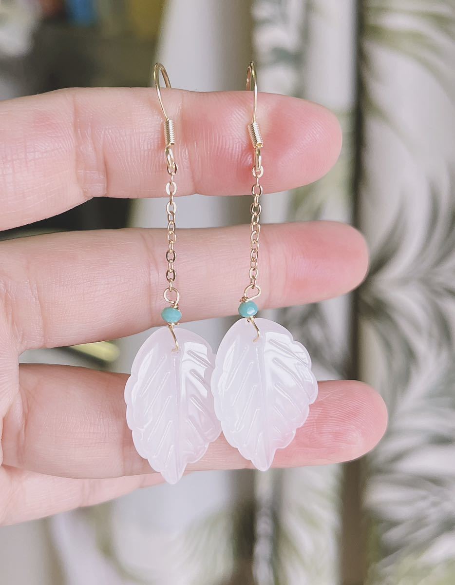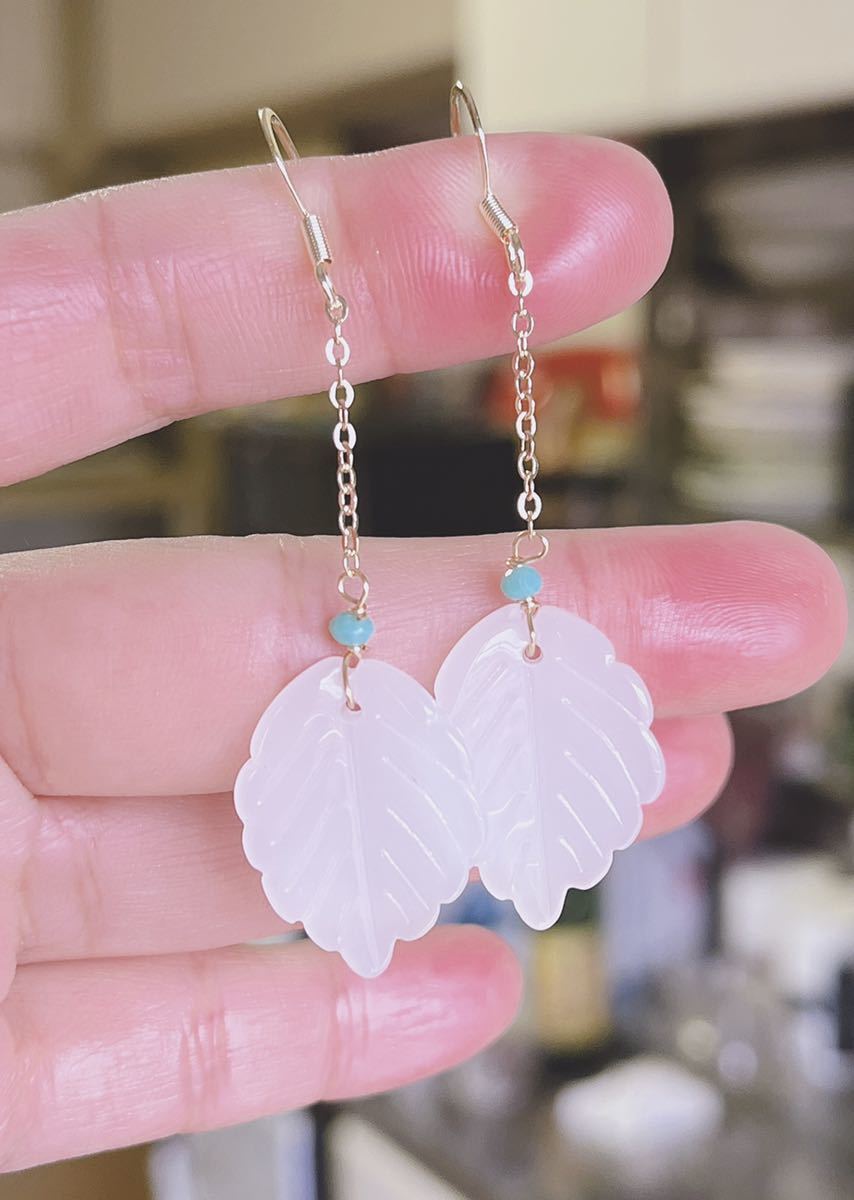 天然白玉髓 葉 ピアスのサイズ約:17.4mm*23.5mm*3mm;