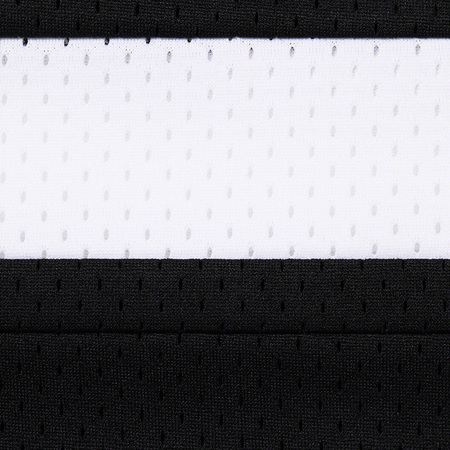 ●前見頃にタックルツイルグラフィックアップリケ、後見頃にタックルツイルロゴアップリケを配したポリエステル素材のメッシュジャージー。