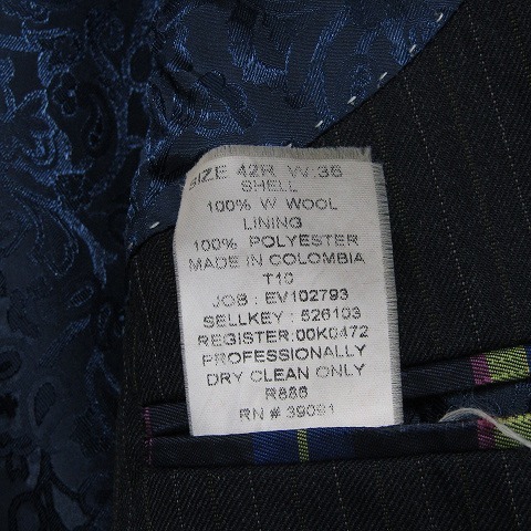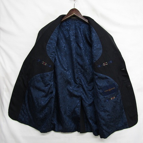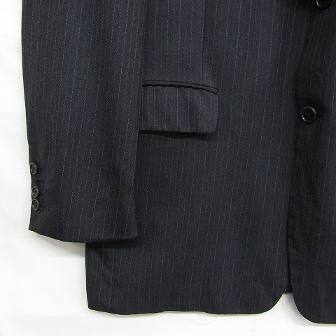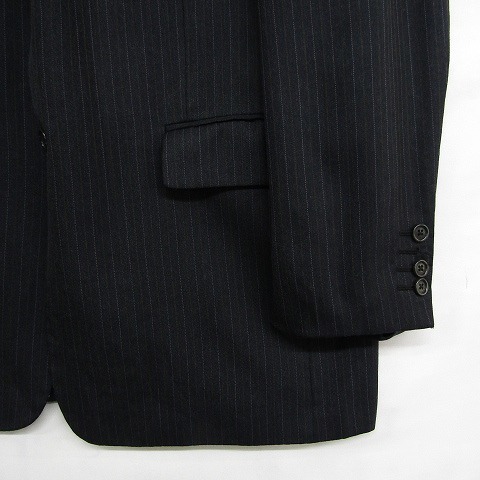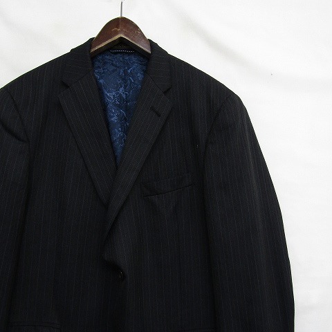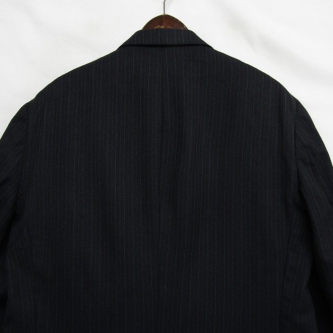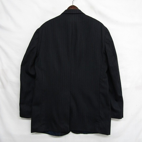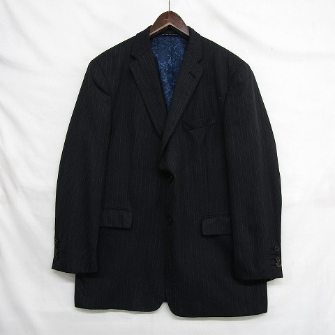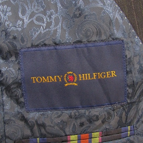 サイズ L トミー ヒルフィガー テーラード ジャケット ウール ブレザー スーツ シングル ストライプ TOMMY HILFIGER ブラック 古着 1D0997