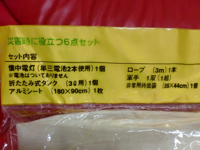 懐中電灯 タンク折り畳み式3L アルミシート ロープ3m 軍手 袋 佐川急便60サイズ