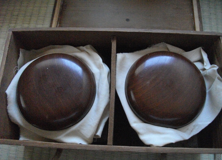 碁盤の箱は購入時ありませんでしたので、私が職人に頼んで桐材で作らせた |