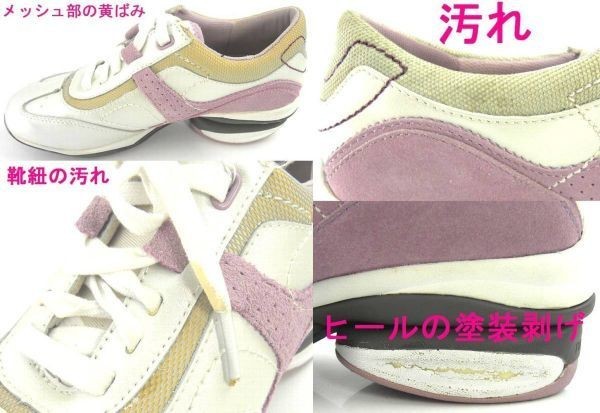 こちらはインソールや底材等を含め全体的に展示や試足の際についたメッシュ部等にディスプレイ焼けの黄ばみ・ホツレや汚れ・本体に汚れやスレ・ヒール部の塗装剥げや素材の劣化、靴底の回転が固かったり緩かったり・試足時の汚れがあったりする経年による劣化傾向等のある訳あり品となりますので、ご了承の上のご落札をお願いします。