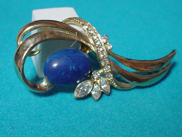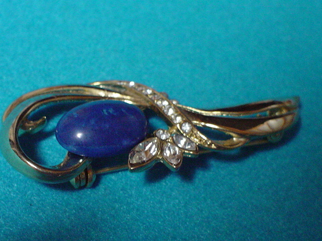 珍品 デザイン ブルーカラーストーン製 ブローチ