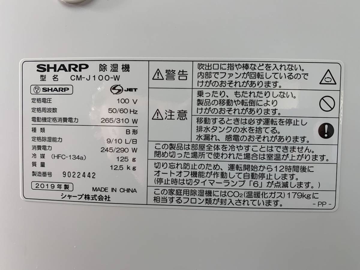 SHARP シャープ CM-J100-W 冷風 衣類乾燥 除湿機 プラズマクラスター7000 コンパクトクール ①