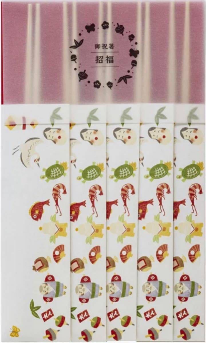 ★お買い得★御祝箸 招福★美濃和紙★吉野桧★5膳入り★新年★お箸【U】