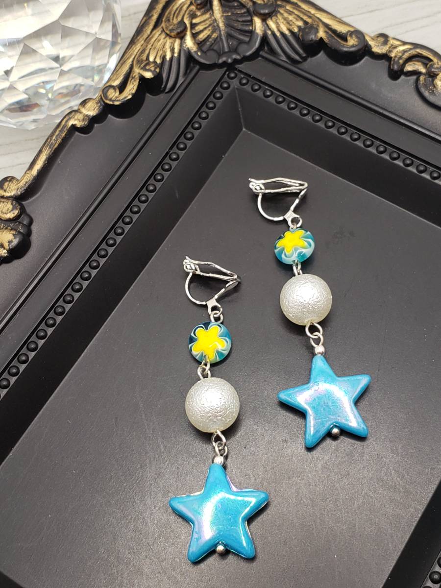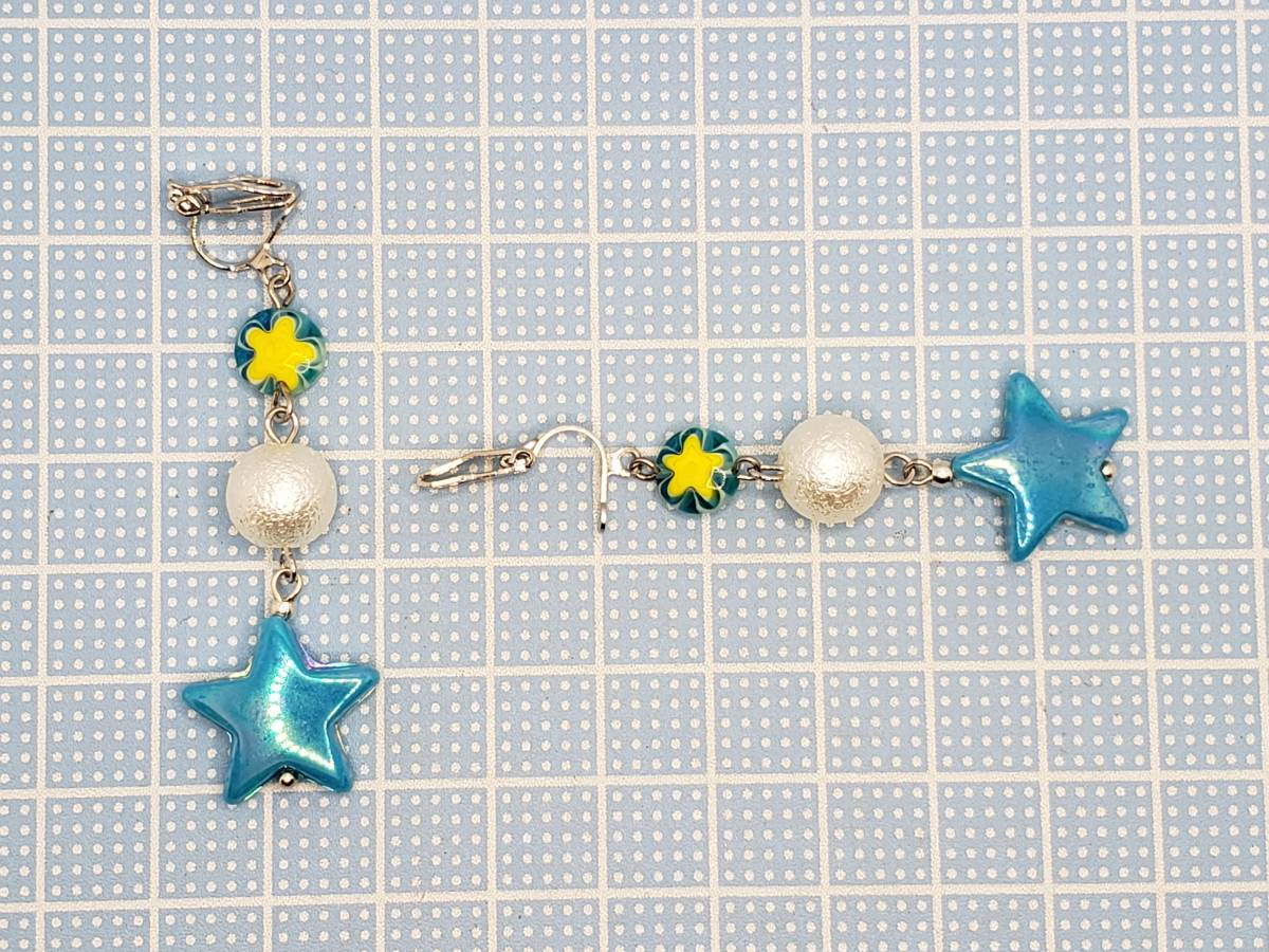 ★ハンドメイド イヤリングorピアス A288 樹脂フック・バネ(クリップ)式イヤリング金具など変更無料 星 ミルフィオリ パール★