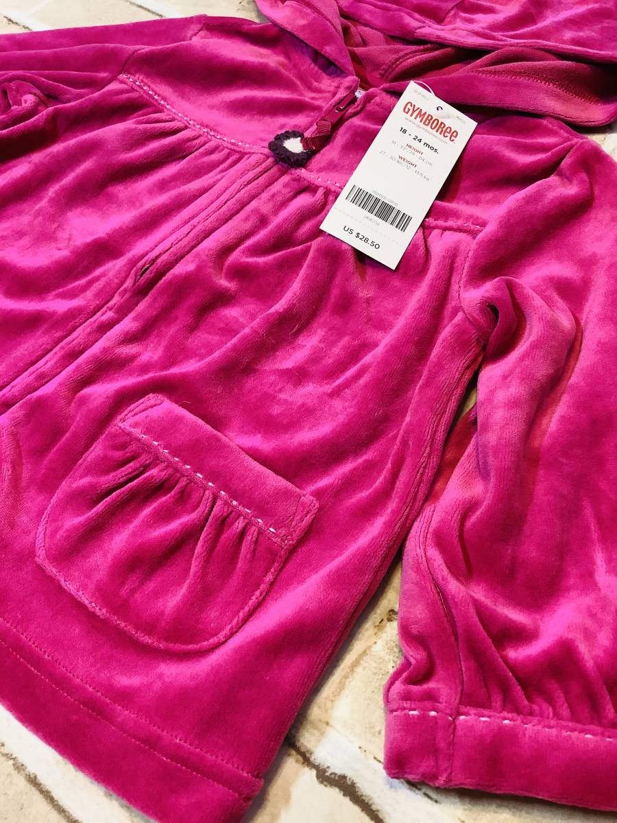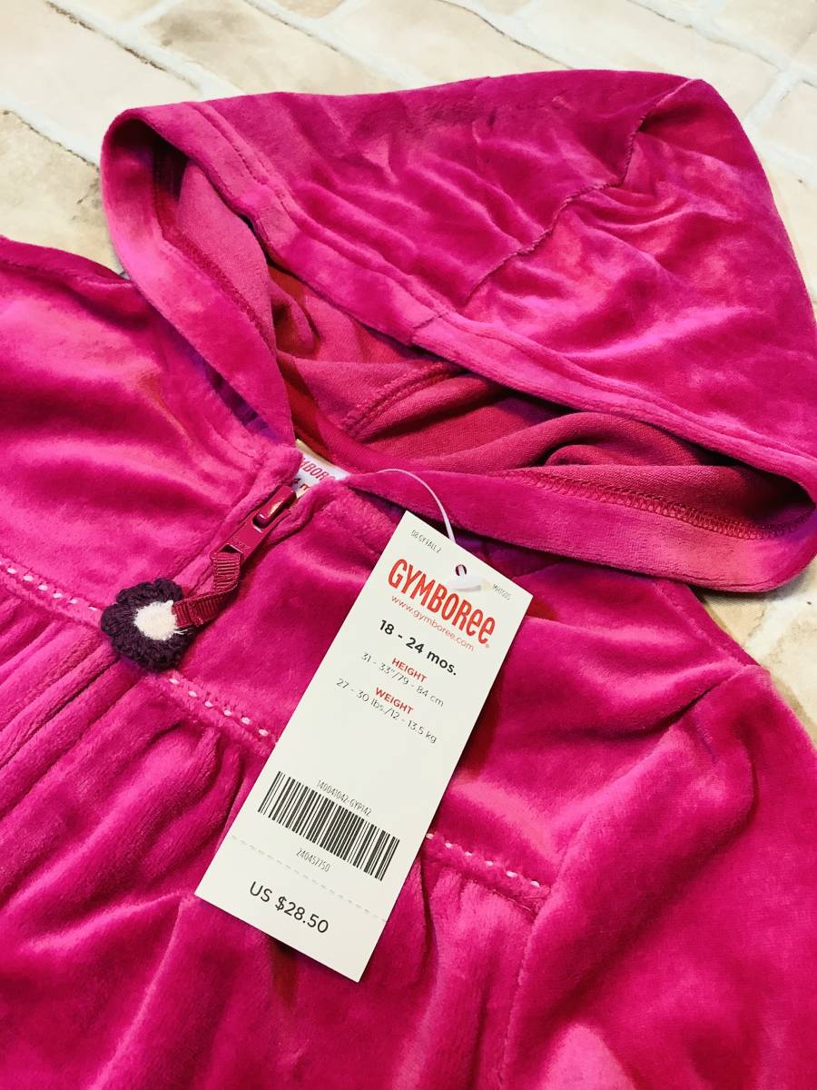 Oth-115【新品】Gymboree/パーカー/80cm/US18-24mos/ビビットピンク/ベロア/子供服/女の子/ジンボリー/インポート/送料無料