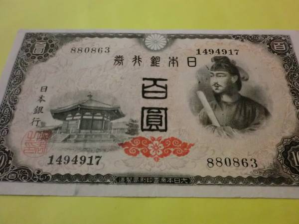 日本銀行券A号100円 4次100円の芝工場です。
