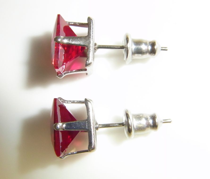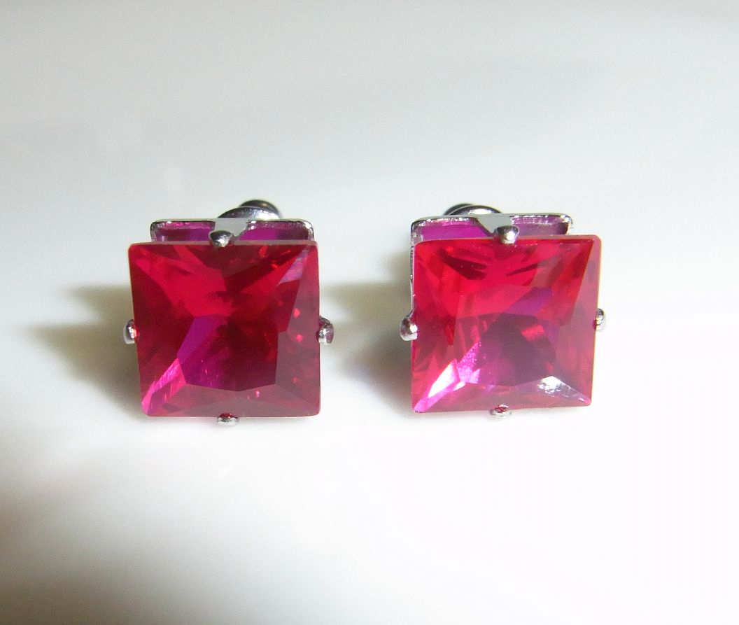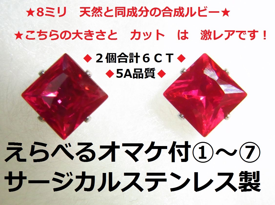 ★新品 6ct 大粒8ミリ ルビー ピアス プリンセスカット ステンレス製☆ | |||