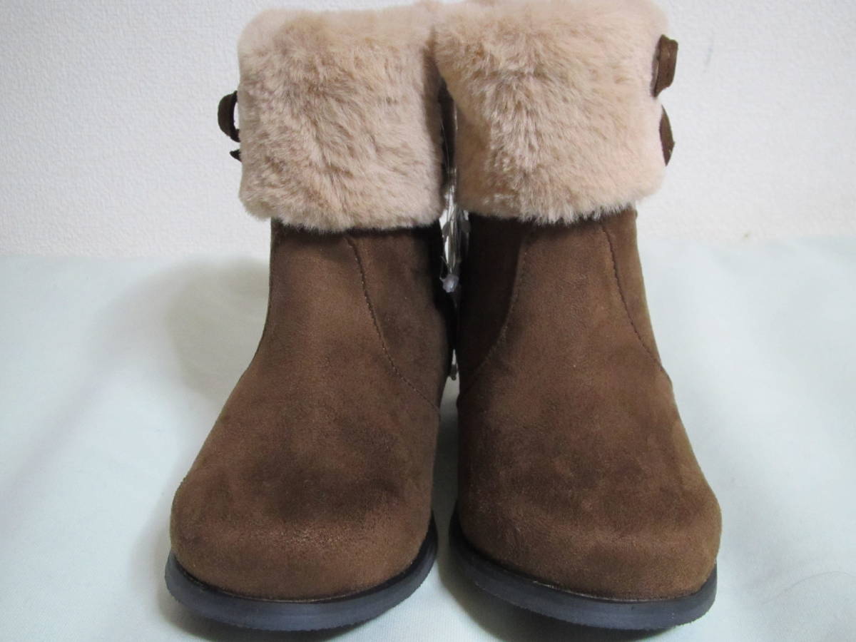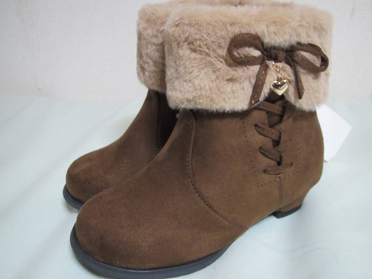 新品 ¥5489 組曲 anyFAM 20cm フォーマル スウェード レザー ファー付き ブーツ 子供用 女の子 ブラウン ハイヒール ブーティー 靴 茶色