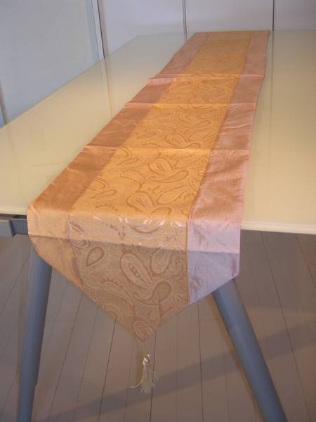 ★★★アジアンティックなテーブルランナー。テーブルに!ベッドスローとして!サイドボードに!!靴箱に!!!かけておしゃれを演出しましょう。ゴールデンブラウン。ペーズリー柄★★★