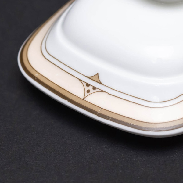ビレロイ&ボッホのキャバリエシリーズのシュガーポット。 "Cavalier(キャバリエ)"はイタリア語で"騎士または騎士道精神に則った紳士"という意味。そんな質実剛健な感じの一品です。 ■サイズ 横幅103 × 奥行86 × 高さ100mm ■付属品 なし ■状態 C(並品):上蓋に微細なペイントの剥げ、ヒビ(表面のみ)があります。 |