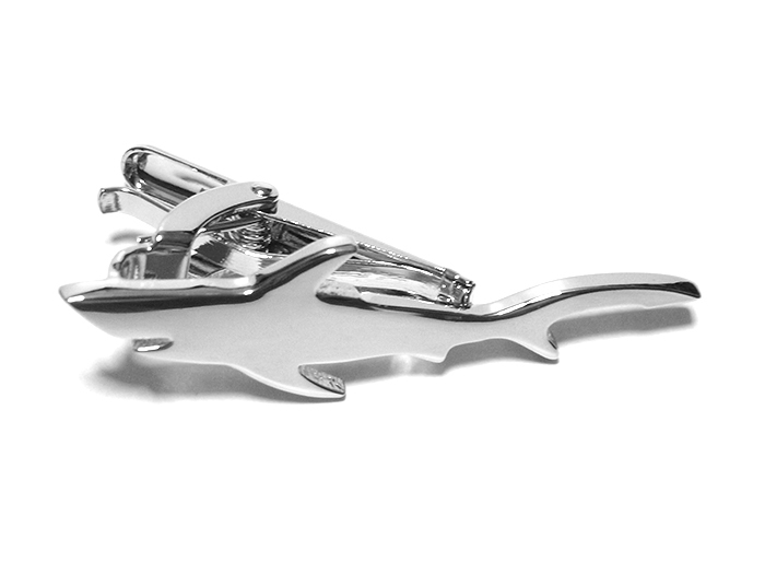【ネクタイ ピン/タイピン/タイ止め/タイバー】シャーク★サメ★鮫★海洋★魚★シルエット★スーツ★シルバー/cl-0049-3