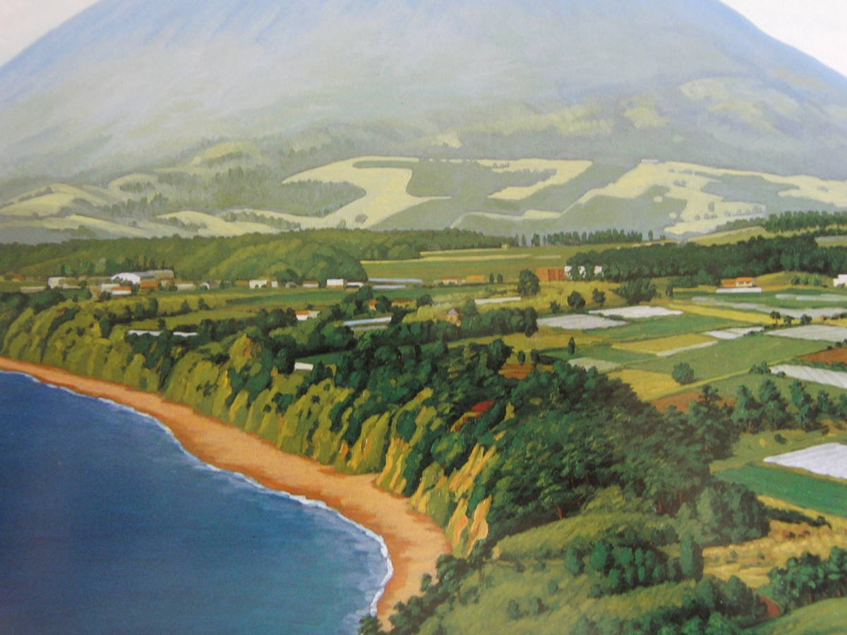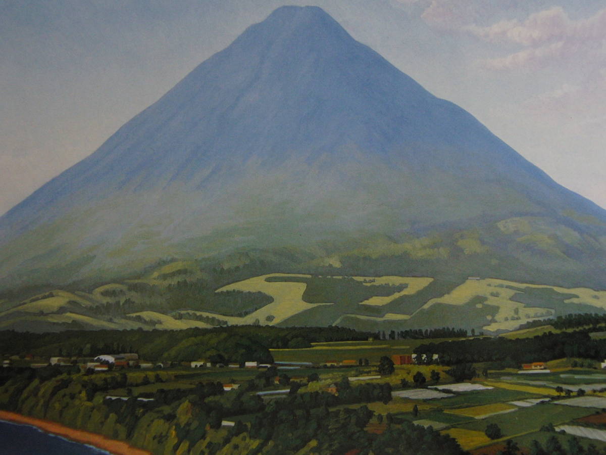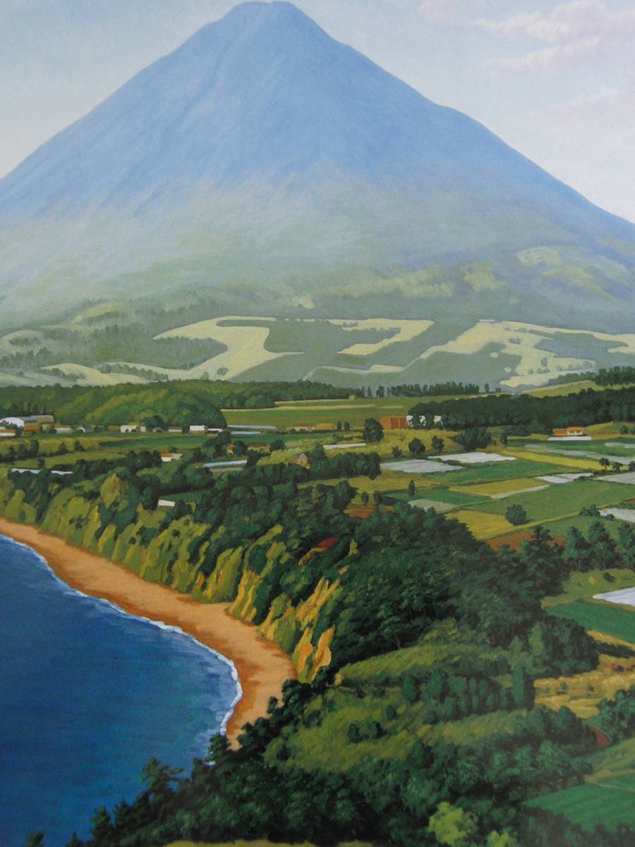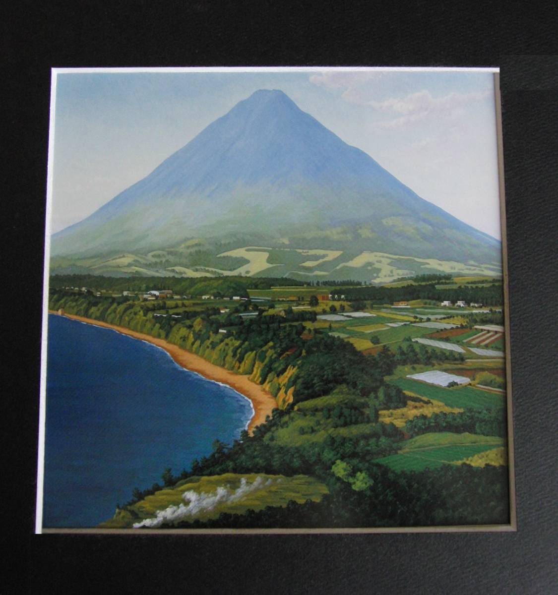 中村隆夫、「開聞岳」、希少な額装用大判画集の額装画、オーダーマット付・日本製新品額入り、送料無料