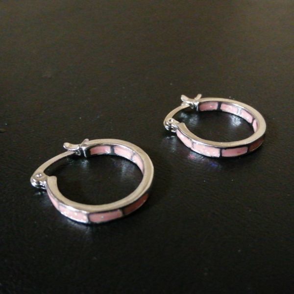 ピアス シルバー フープ ラウンド ピンク シンプル スタイル レディース 韓国 クリスタル #C759-2